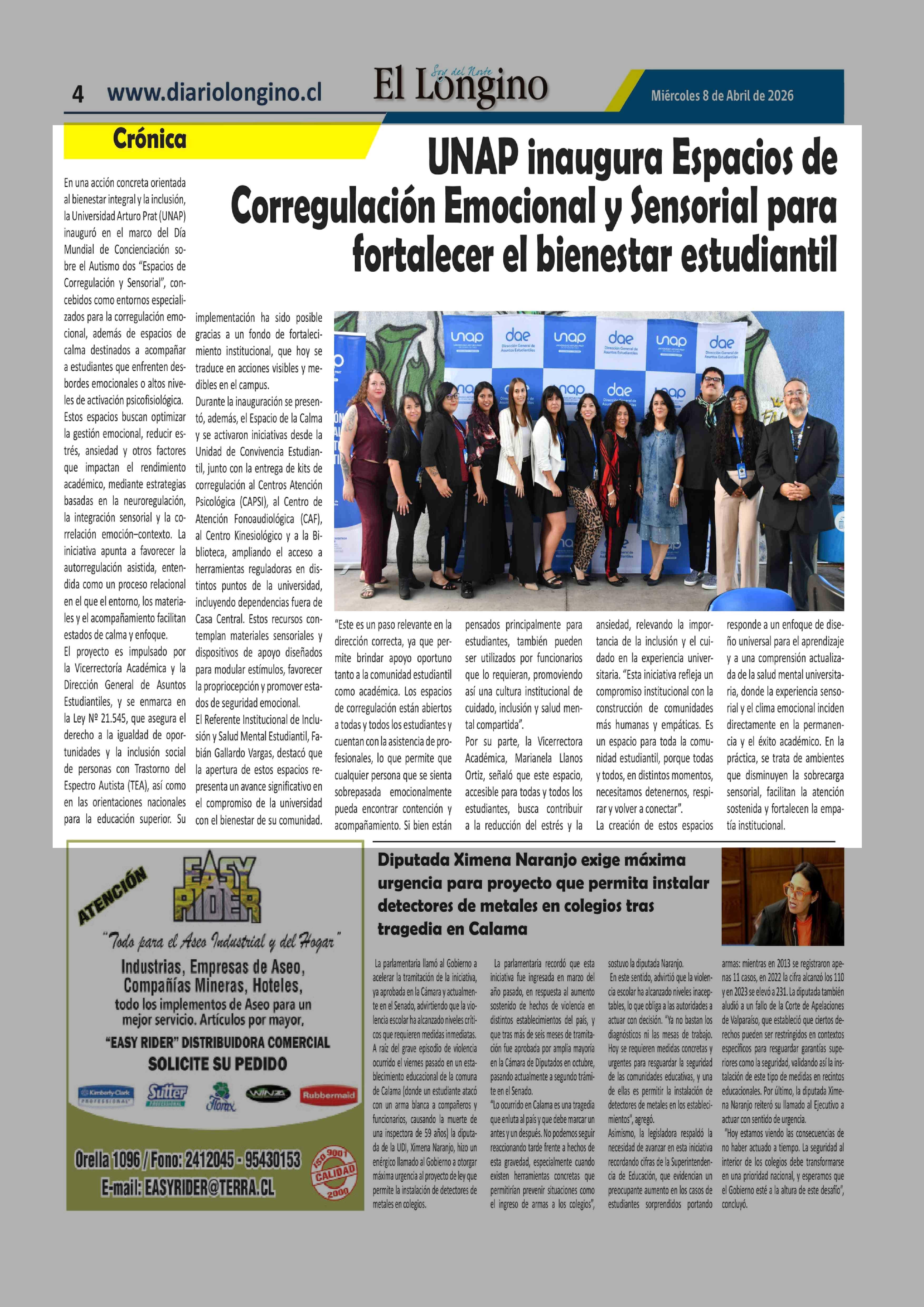 Título: UNAP inaugura Espacios de Corregulación Emocional y Sensorial para fortalecer el bienestar estudiantil