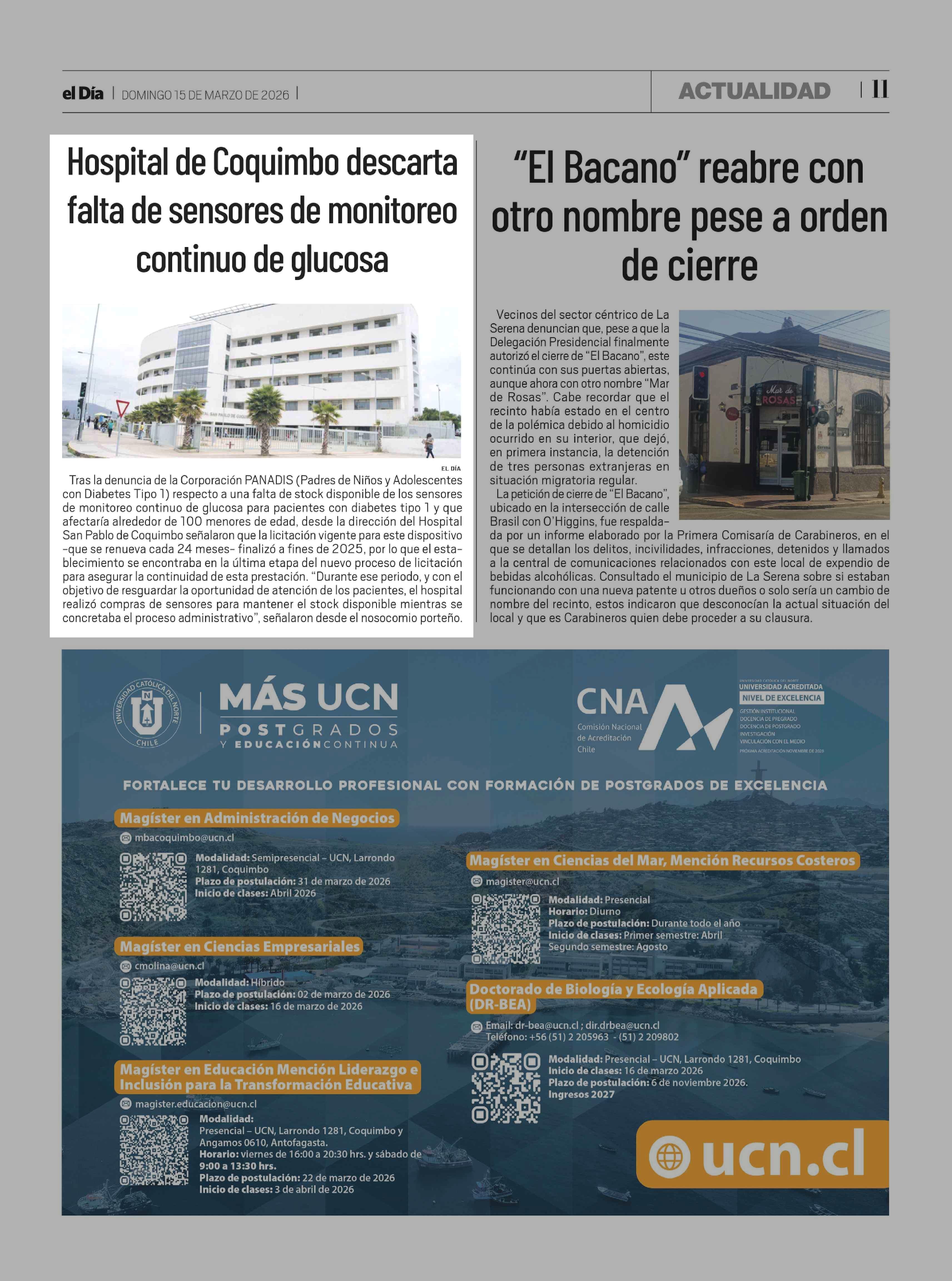 Hospital de Coquimbo descarta falta de sensores de monitoreo continuo de glucosa 15-03-2026 El Día |