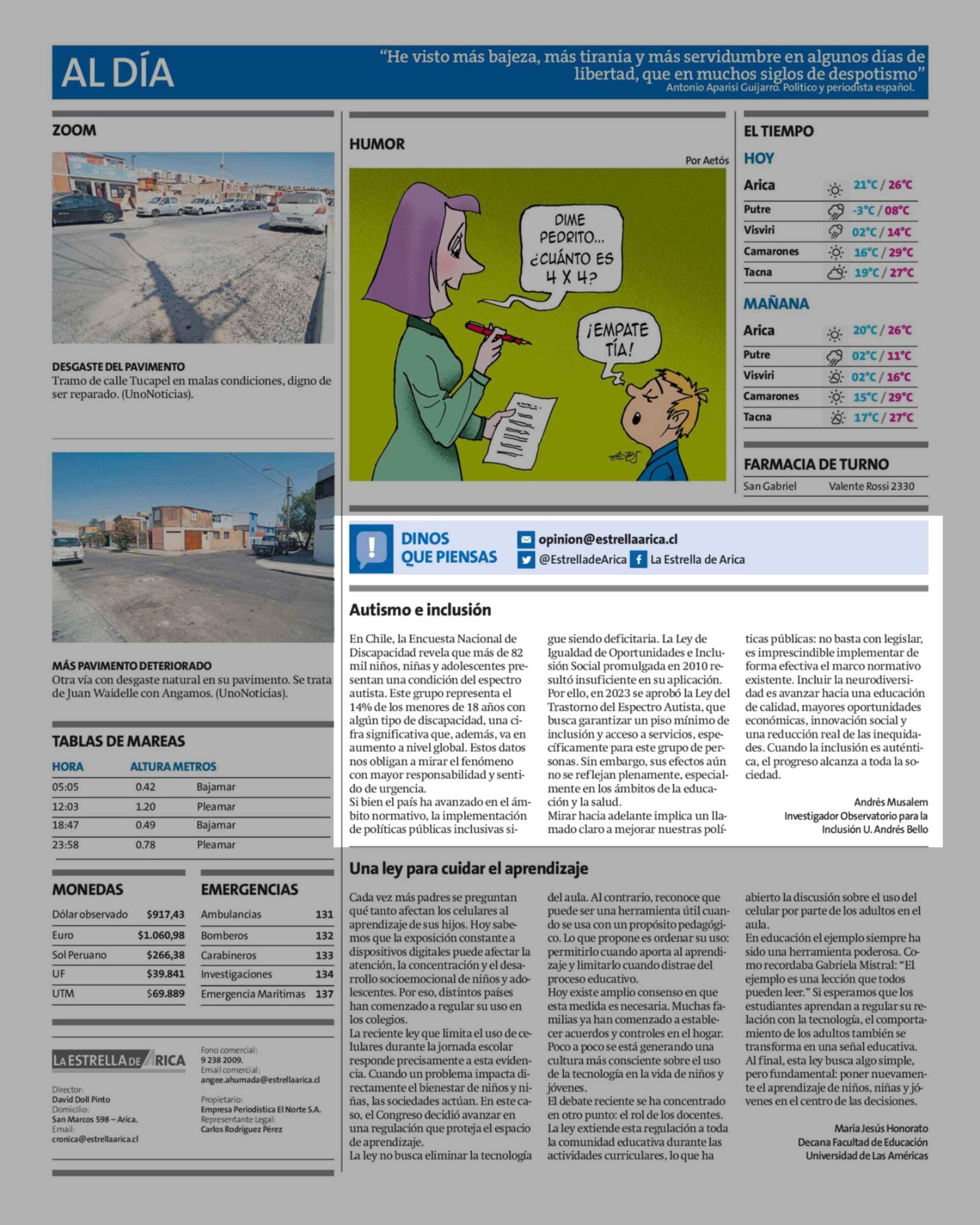 Fuente: La Estrella de Arica (La Estrella de Arica) Página(s): 6