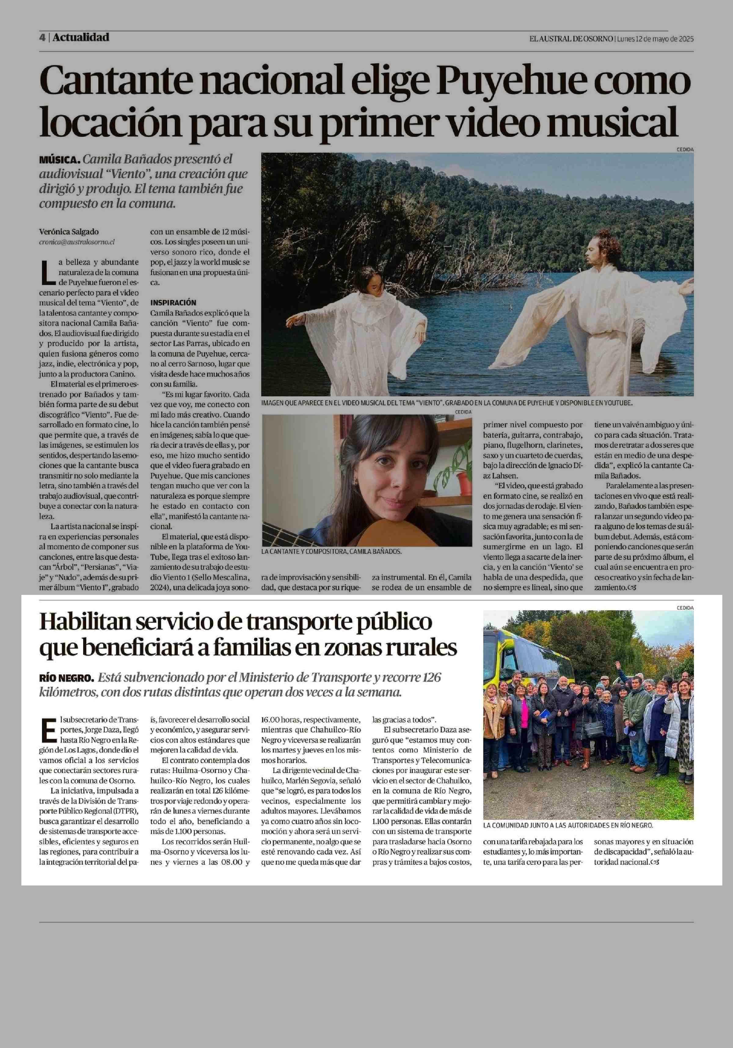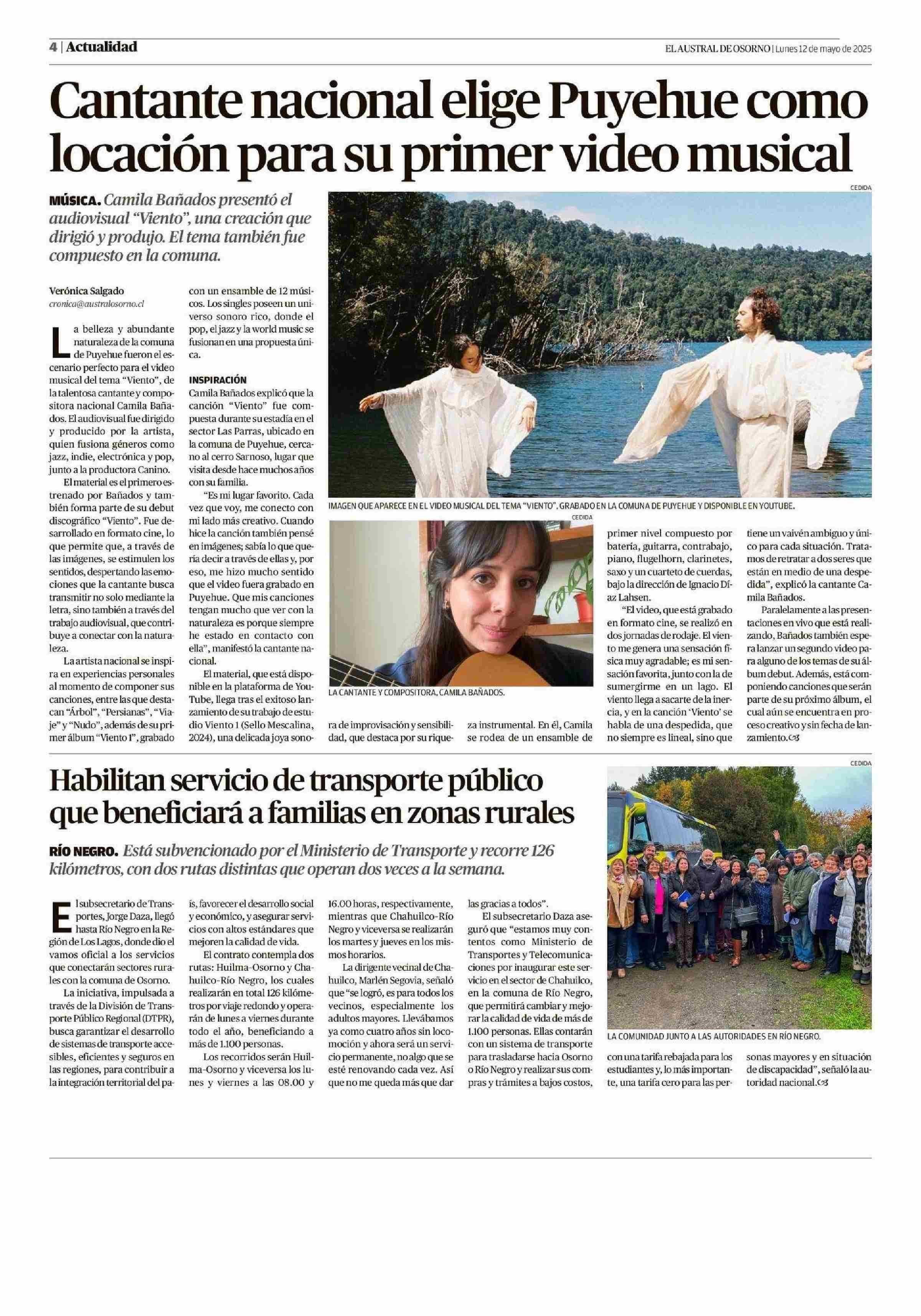 Habilitan servicio de transporte público que beneficiará a familias en zonas rurales 12-05-2025 El Austral de Osorno |
