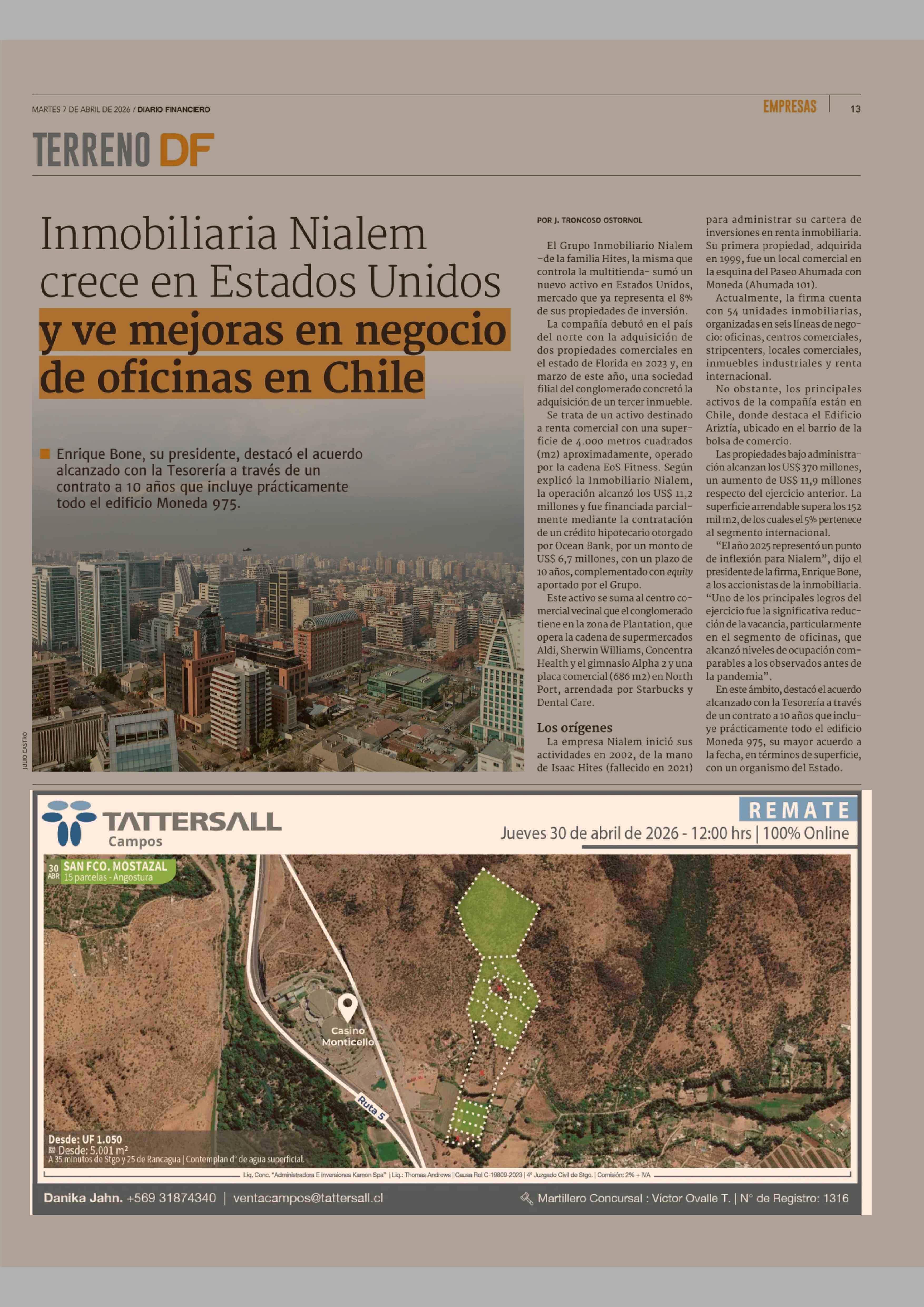 Fuente: Diario Financiero (Diario Financiero) Página(s): 13