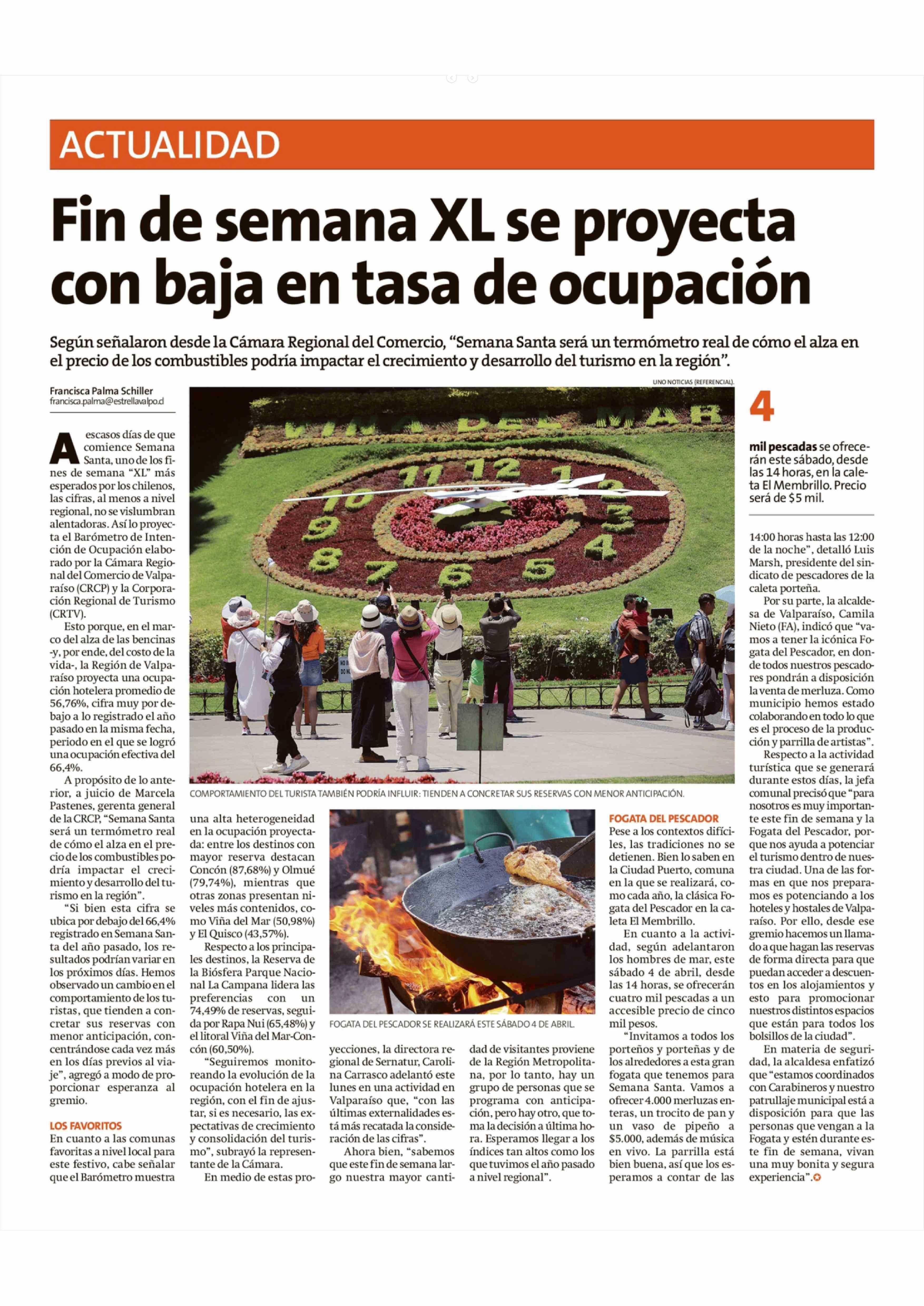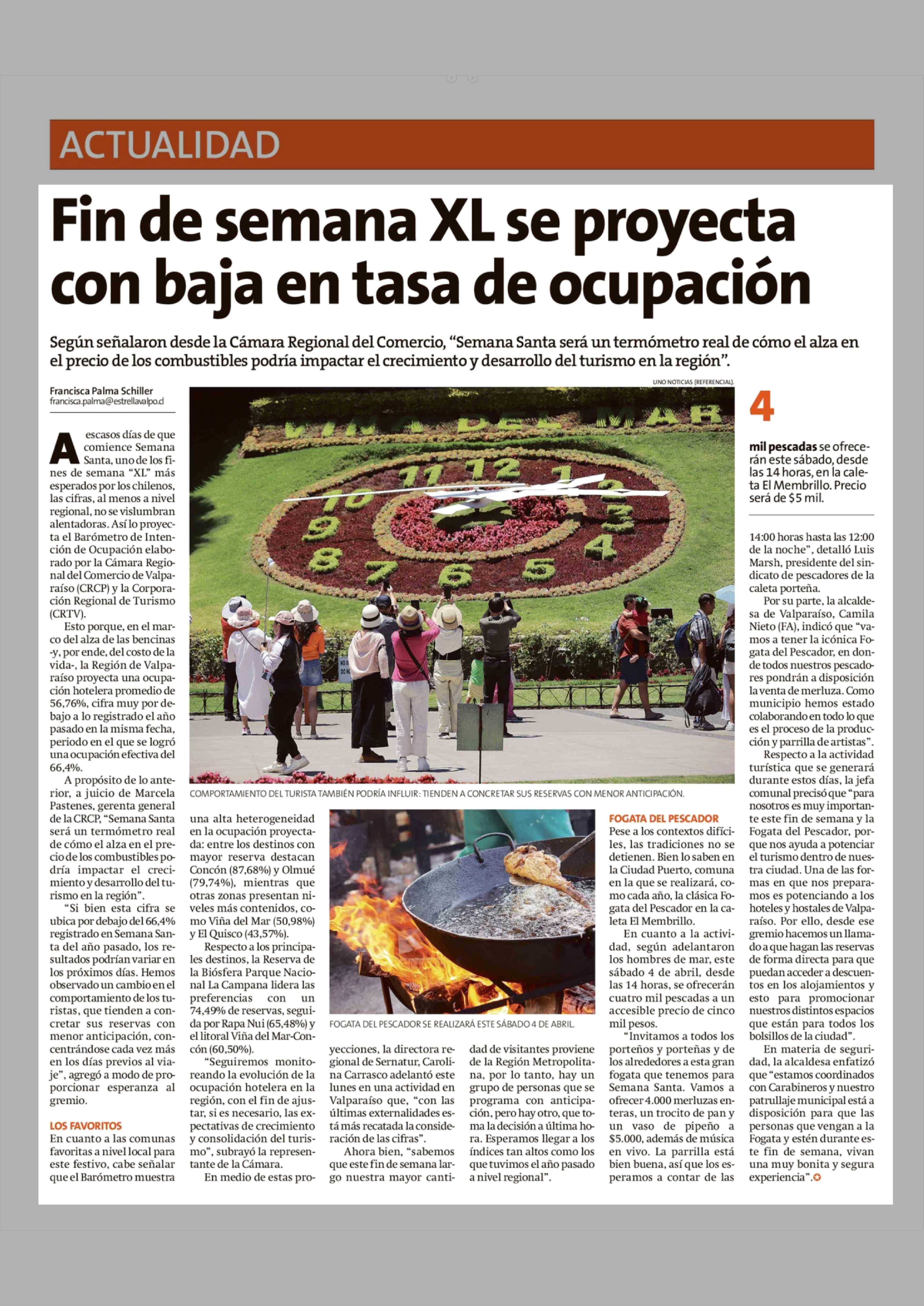 Fin de semana XL se proyecta con baja en tasa de ocupación 31-03-2026 La Estrella de Valparaíso |
