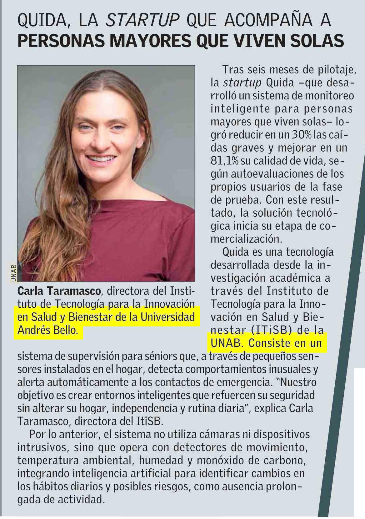 QUIDA, LA STARTUP QUE ACOMPAÑA A PERSONAS MAYORES QUE VIVEN SOLAS 09-06-2025 El Mercurio |