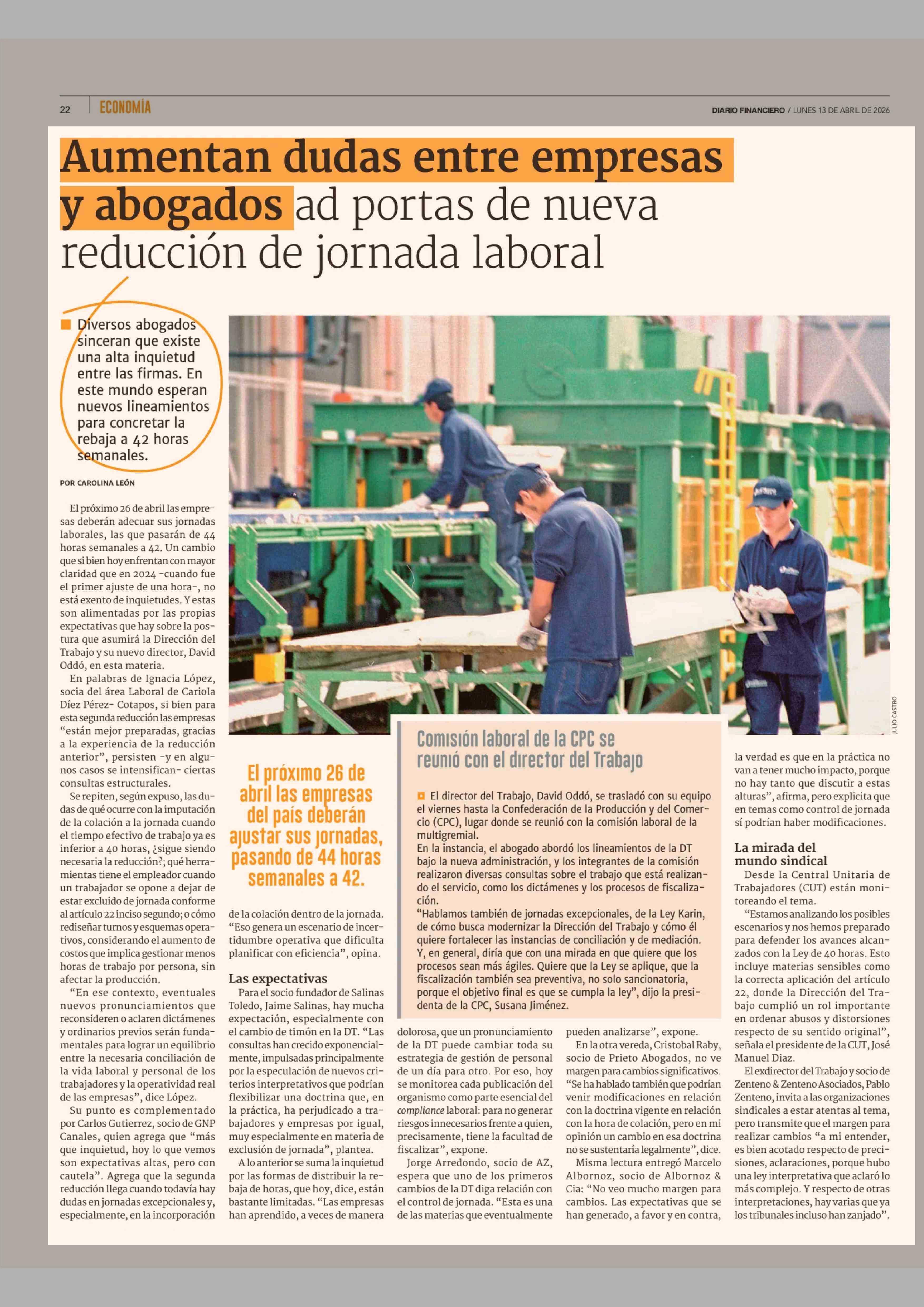 Aumentan dudas entre empresas y abogados ad portas de nueva reducción de jornada laboral