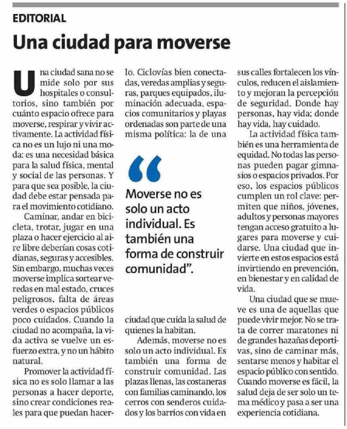 Título: Editorial: Una ciudad para moverse