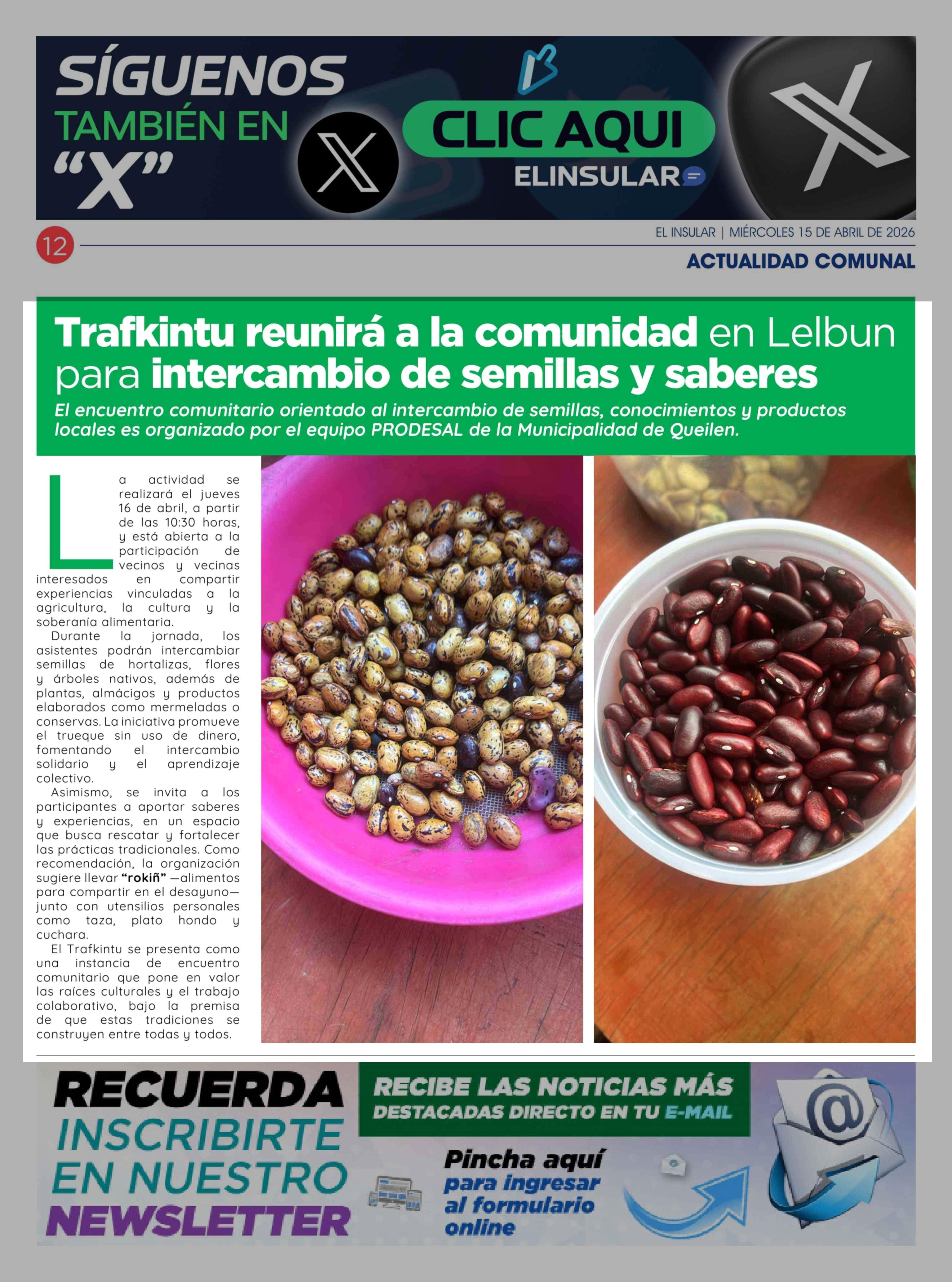 Título: Trafkintu reunirá a la comunidad en Lelbun para intercambio de semillas y saberes