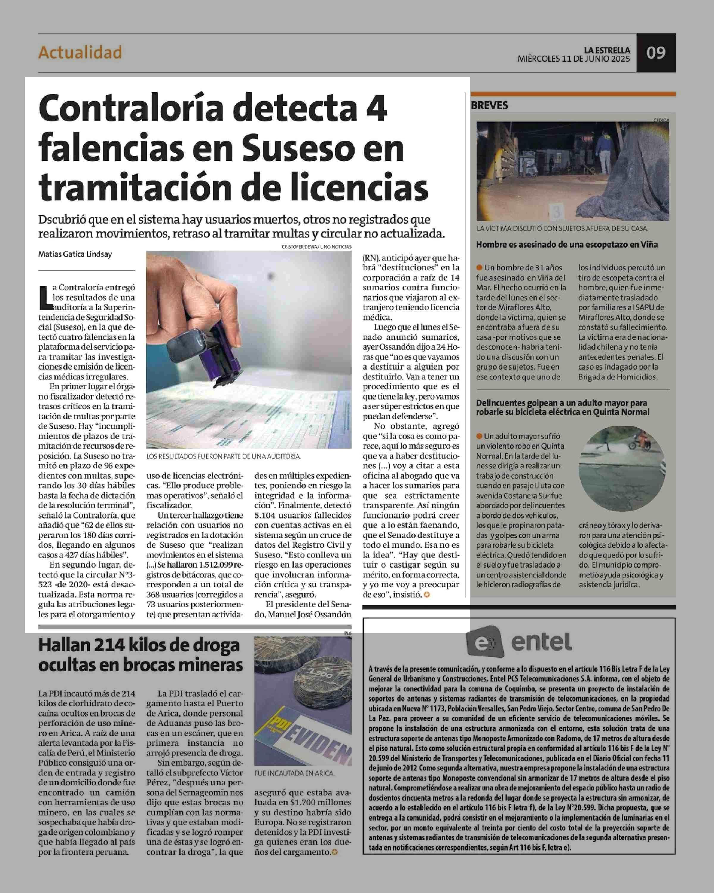 Contraloría detecta 4 falencias en Suseso en tramitación de licencias 11-06-2025 La Estrella de Concepción |