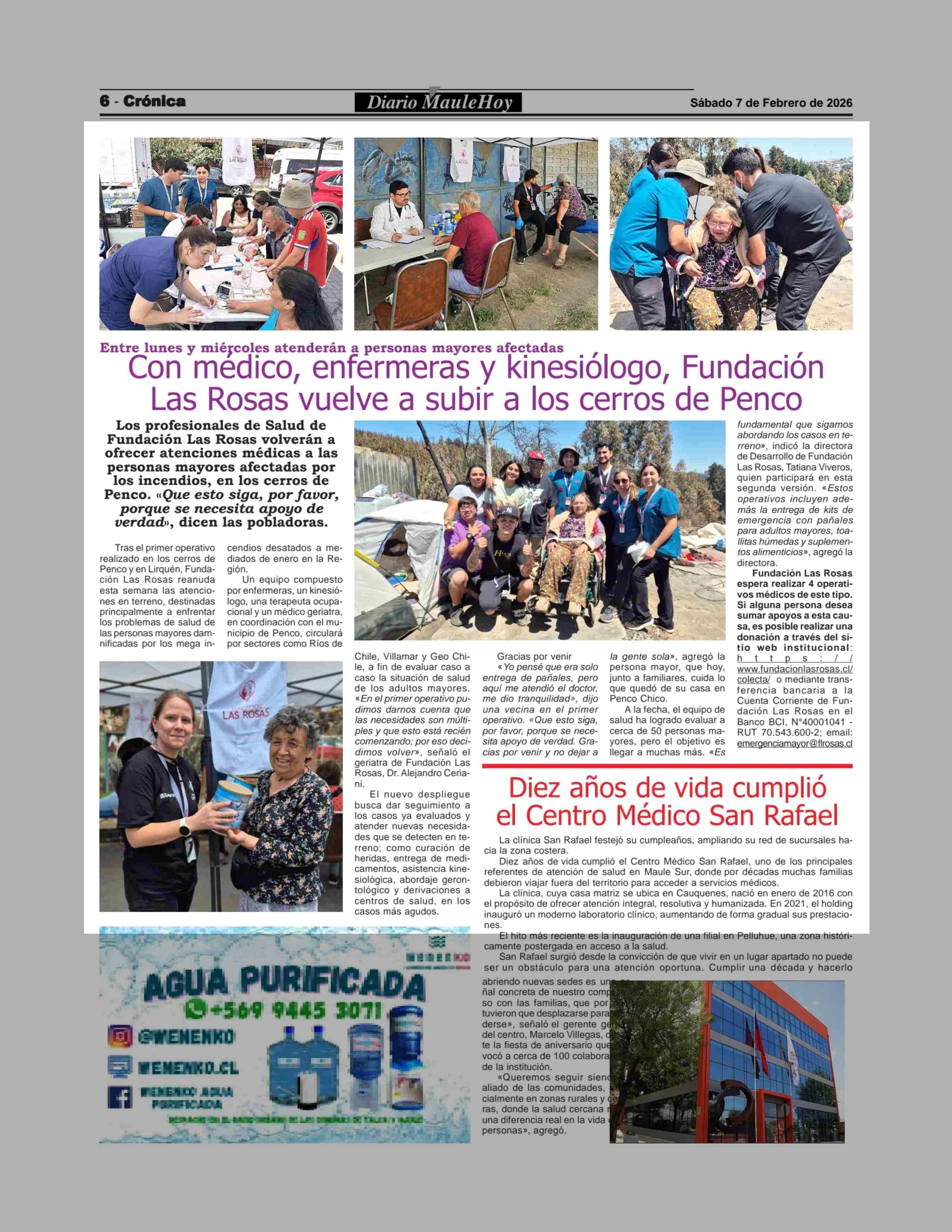 Con médico, enfermeras y kinesiólogo, Fundación Las Rosas vuelve a subir a los cerros de Penco 07-02-2026 Maule Hoy |