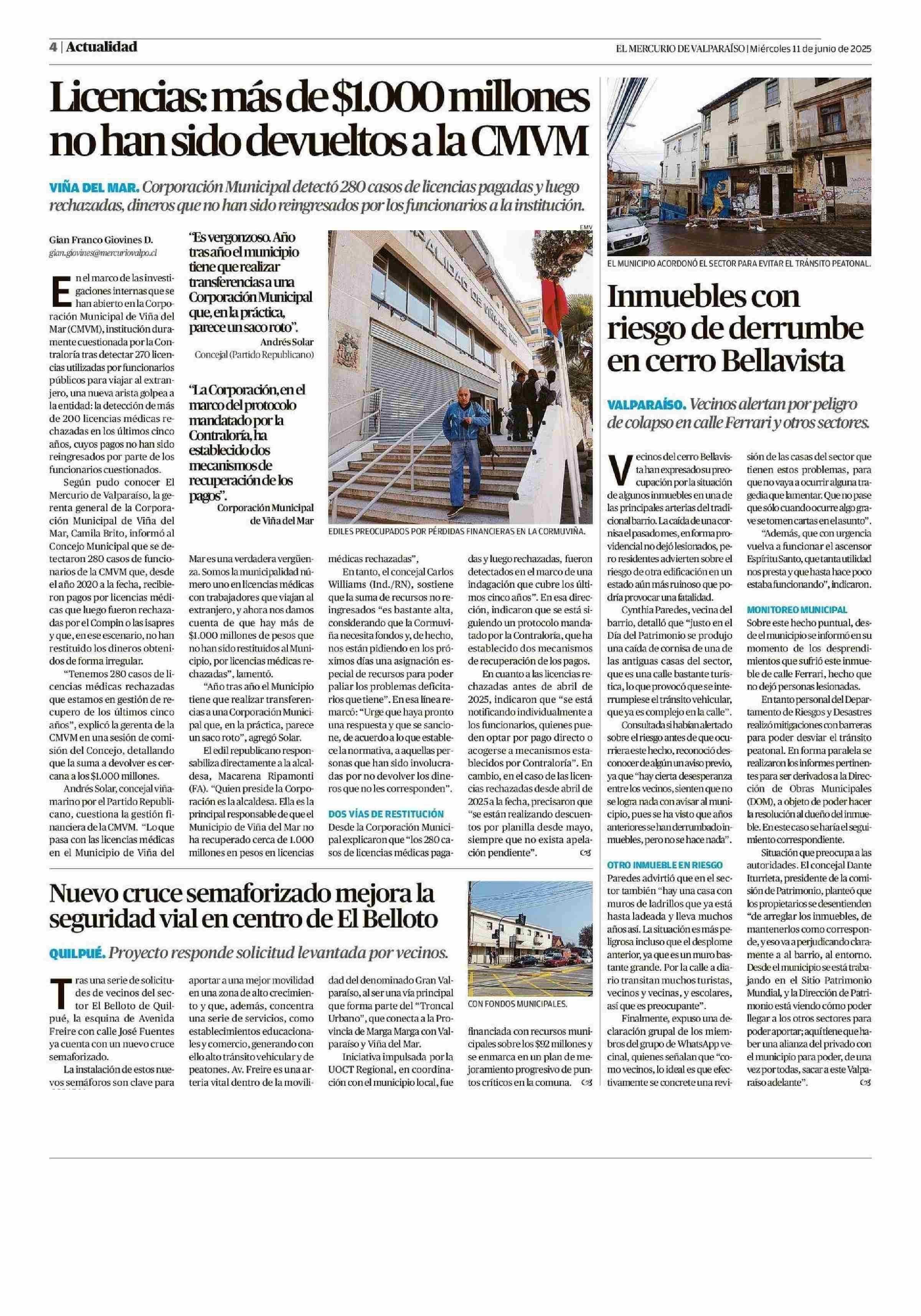 Licencias: más de $1.000 millones no han sido devueltos a la CMVM 11-06-2025 El Mercurio de Valparaíso |