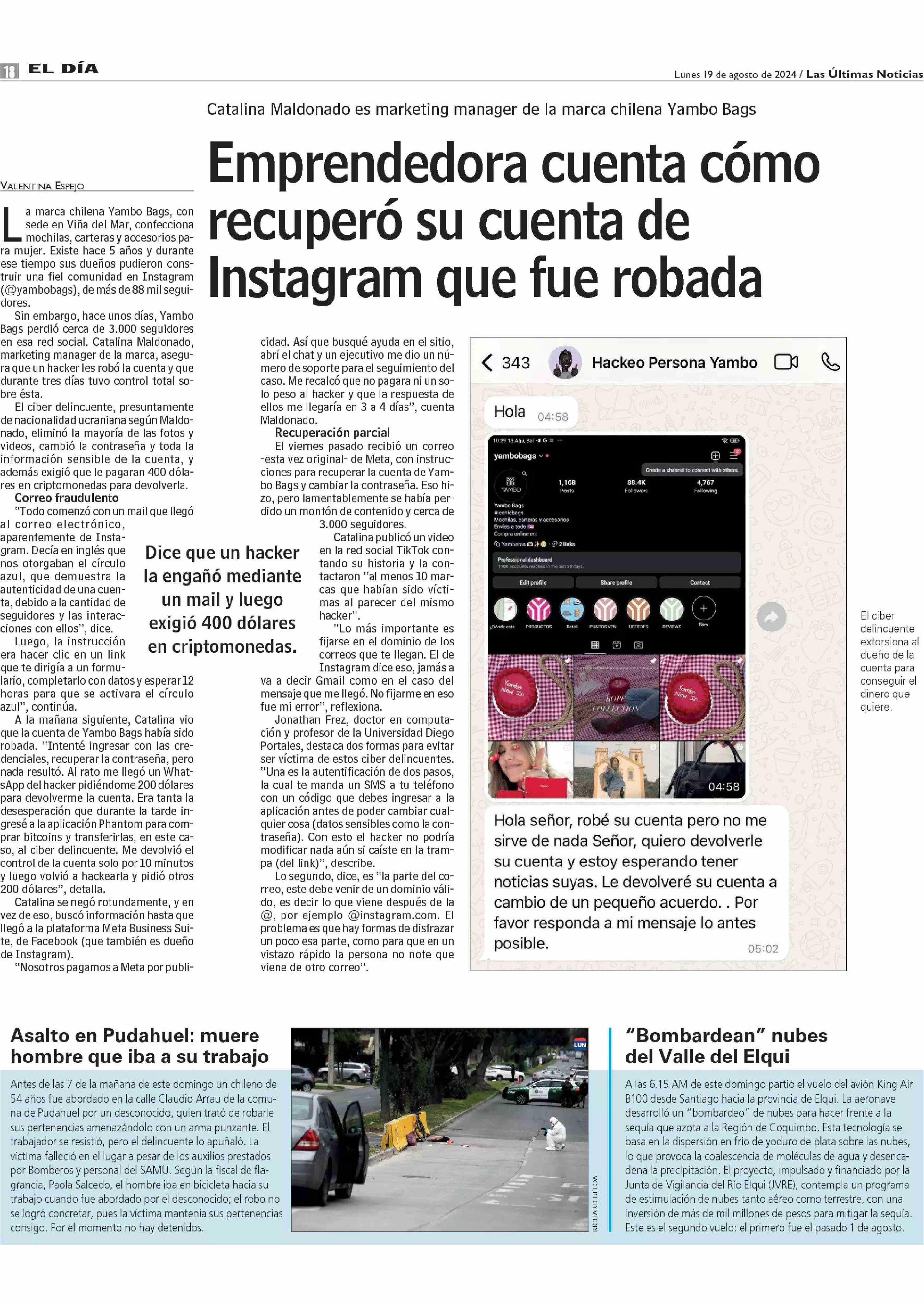 Emprendedora cuenta cómo recuperó su cuenta de Instagram que fue robada 19-08-2024 Las Últimas Noticias |
