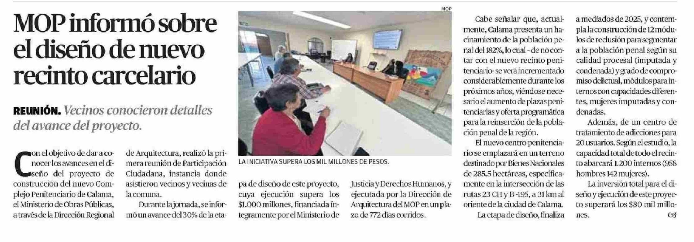 MOP informó sobre el diseño de nuevo recinto carcelario 23-11-2023 El Mercurio de Calama |