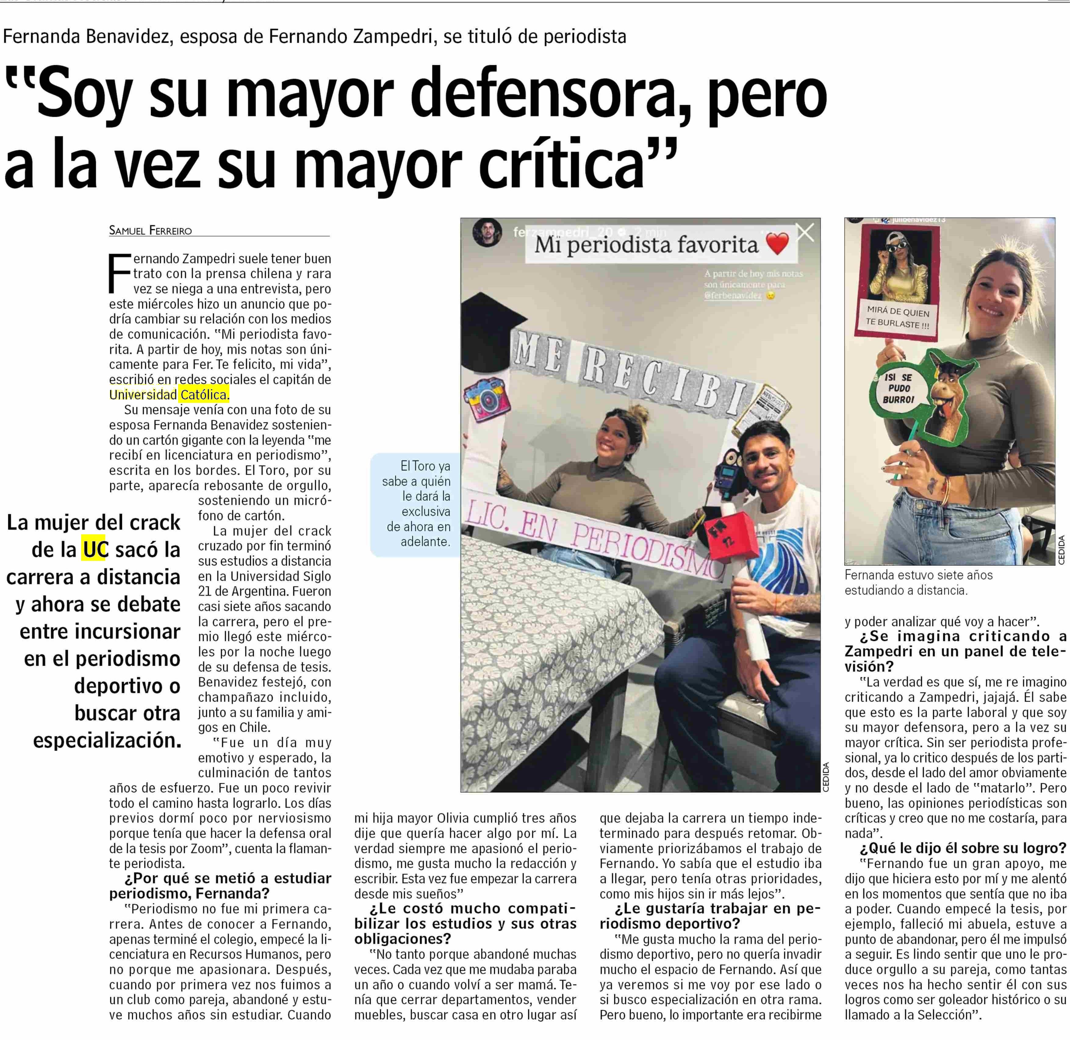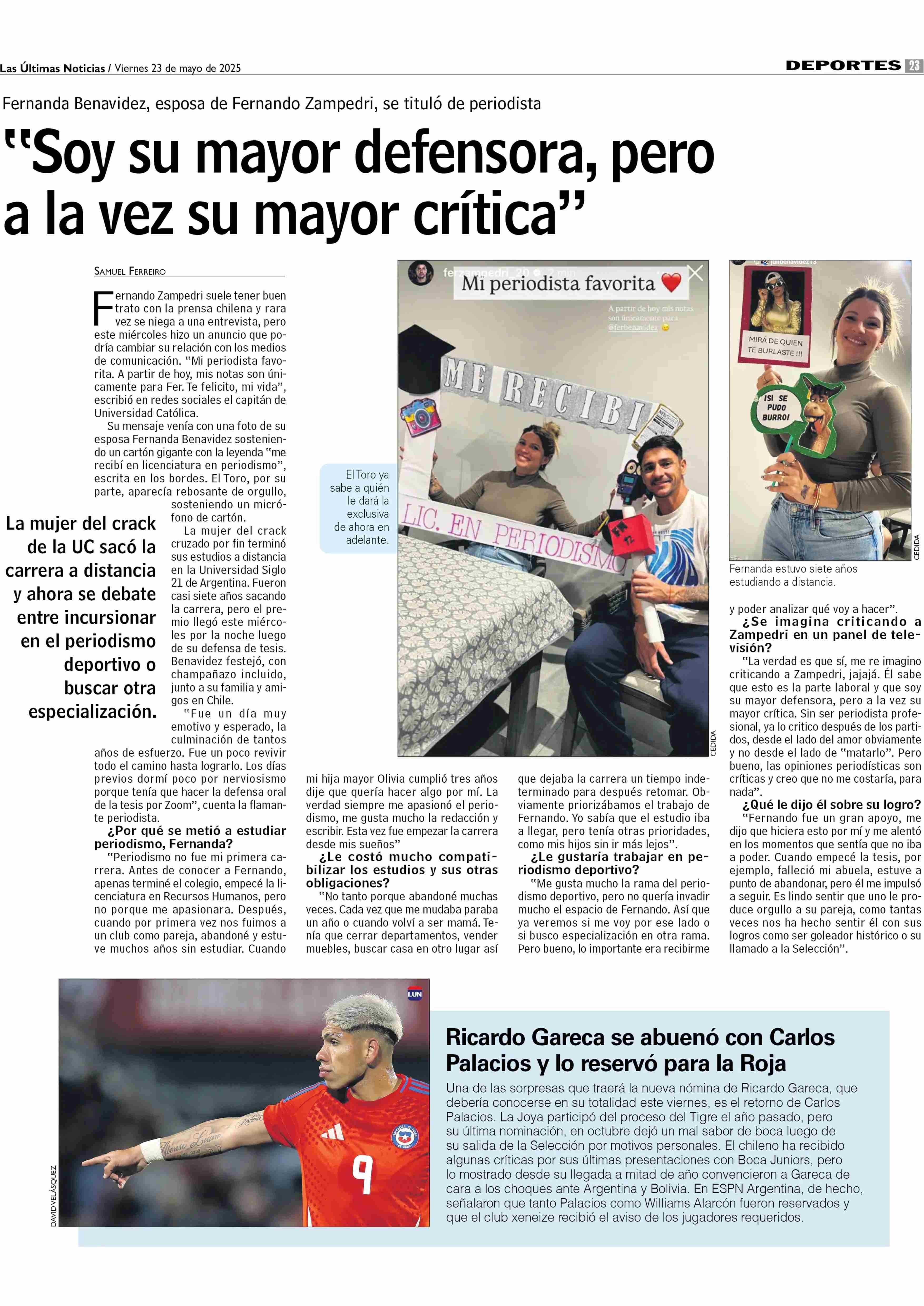 “Soy su mayor defensora, pero a la vez su mayor crítica” 23-05-2025 Las Últimas Noticias |