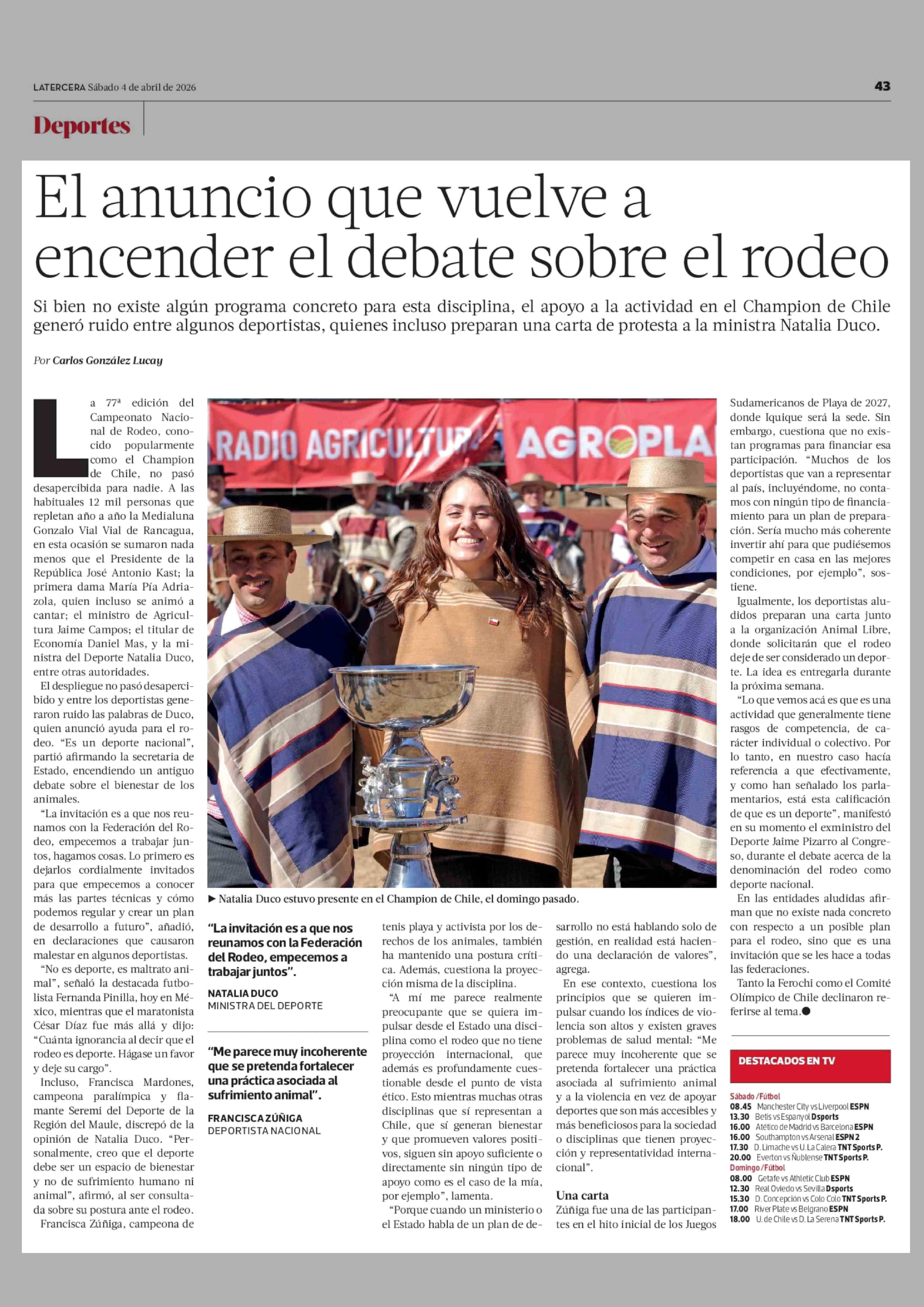 Fuente: La Tercera (La Tercera) Página(s): 43