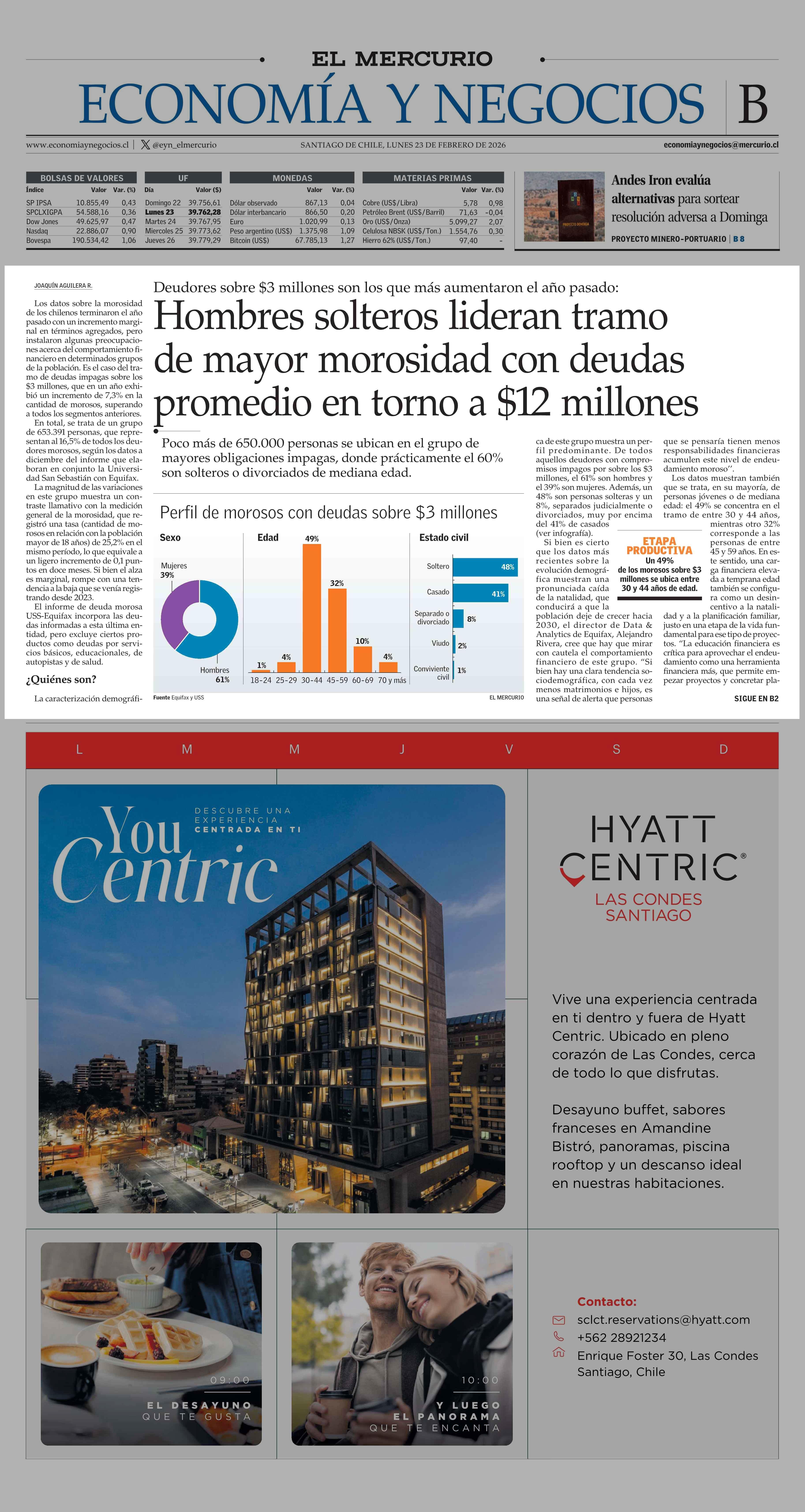 Hombres solteros lideran tramo de mayor morosidad con deudas promedio en torno a $12 millones