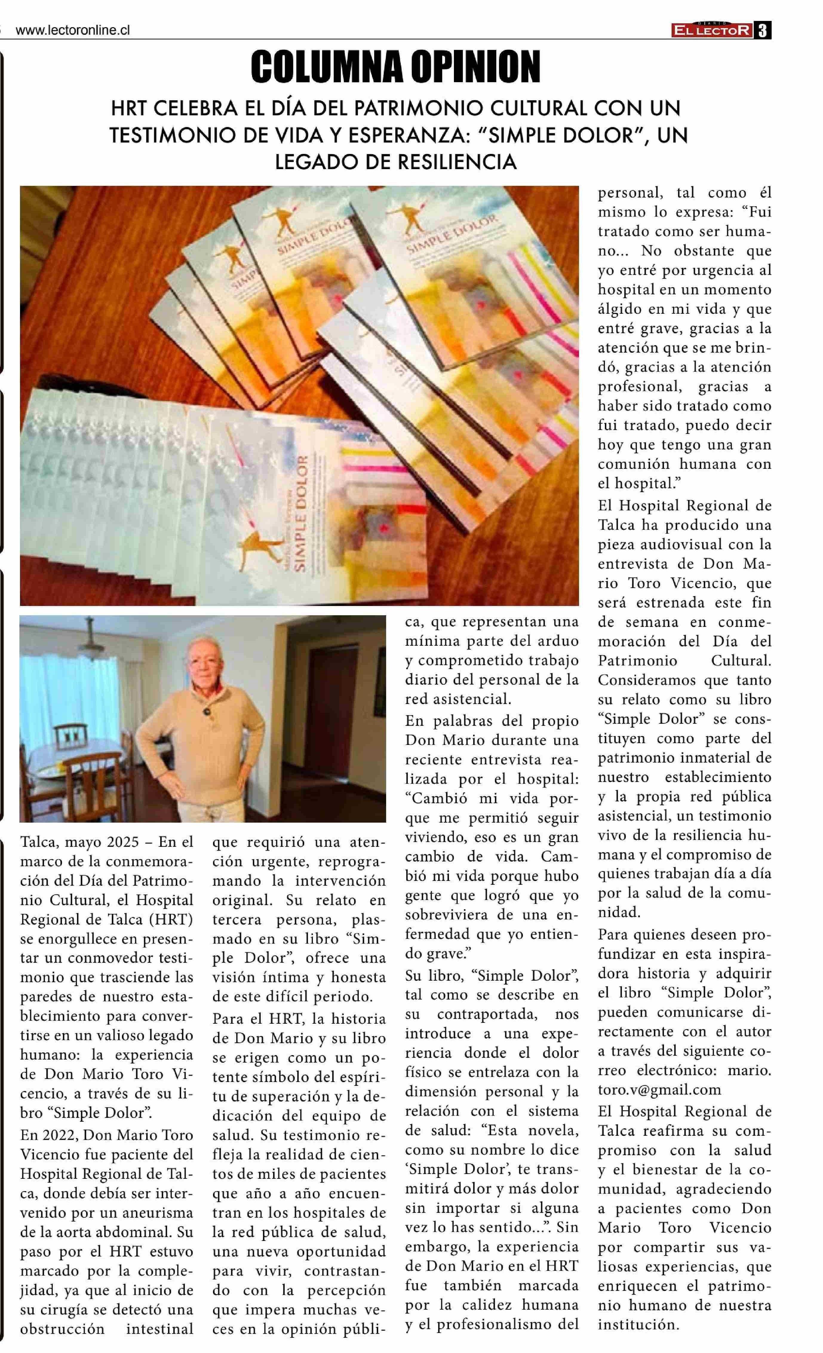 Título: COLUMNAS DE OPINIÓN: “SIMPLE DOLOR”, UN LEGADO DE RESILIENCIA