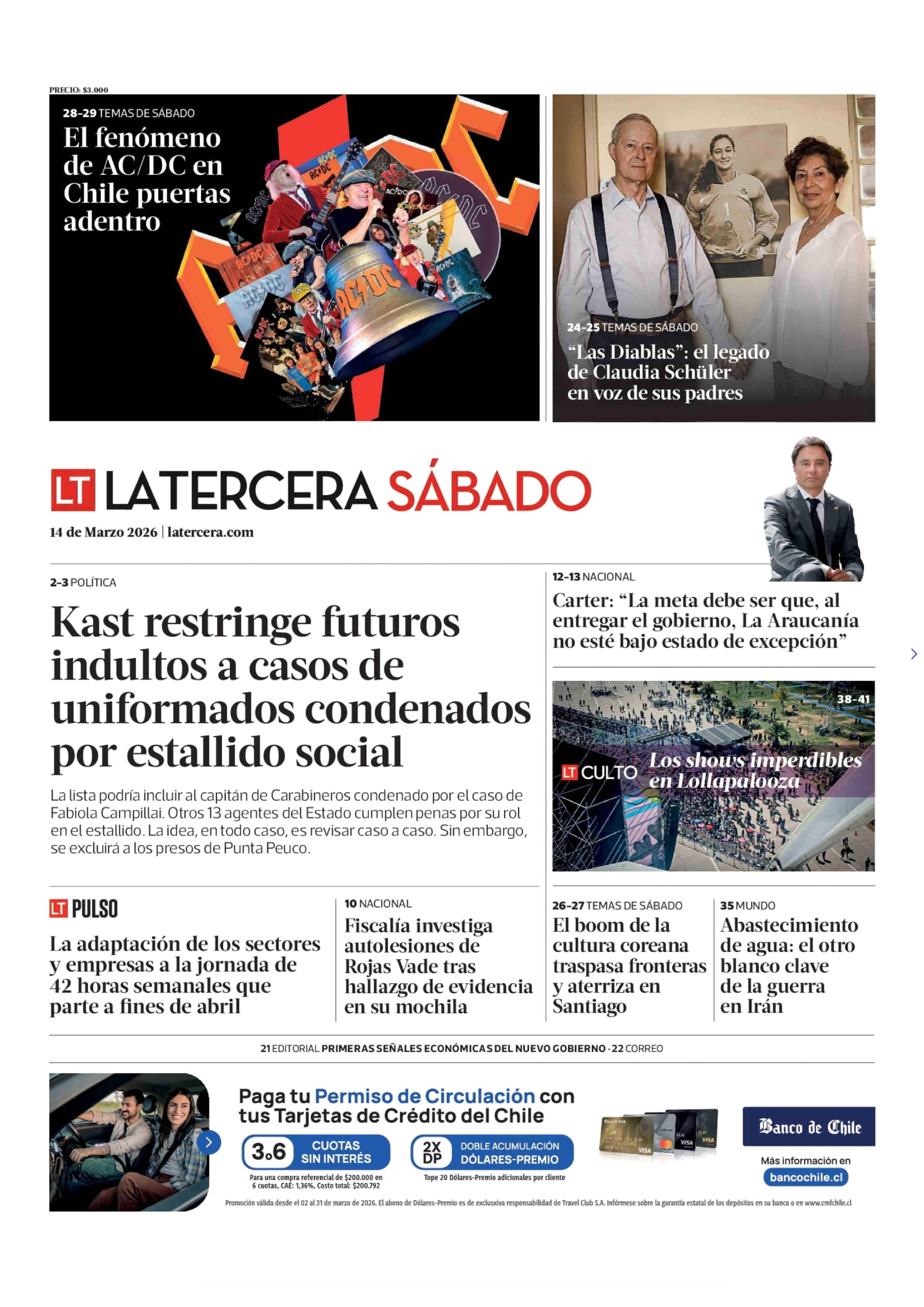 | Fecha: | 14-03-2026 | Sector: | Portada | Región: | Región Metropolitana de Santiago |