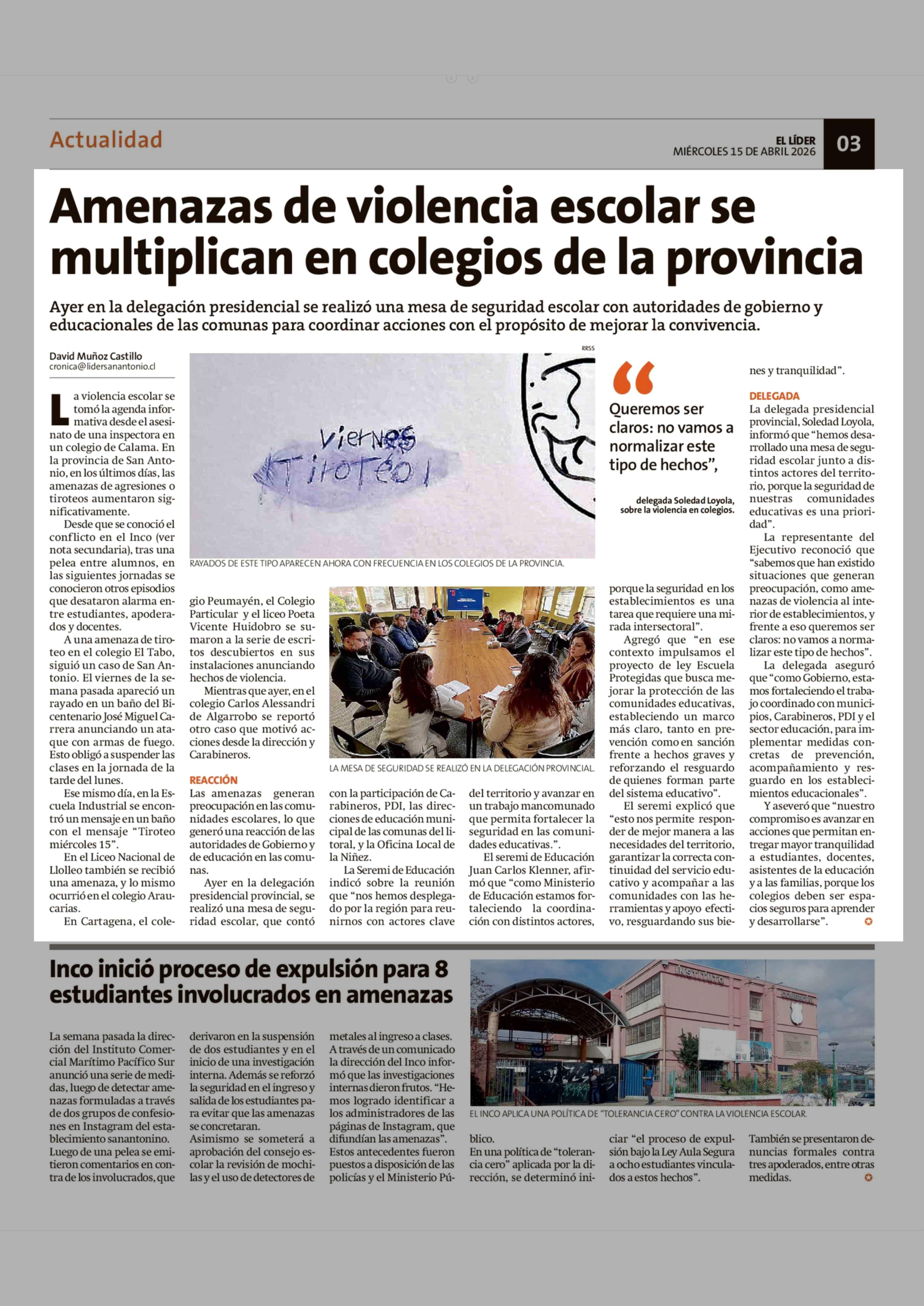 Título: Amenazas de violencia escolar se multiplican en colegios de la provincia