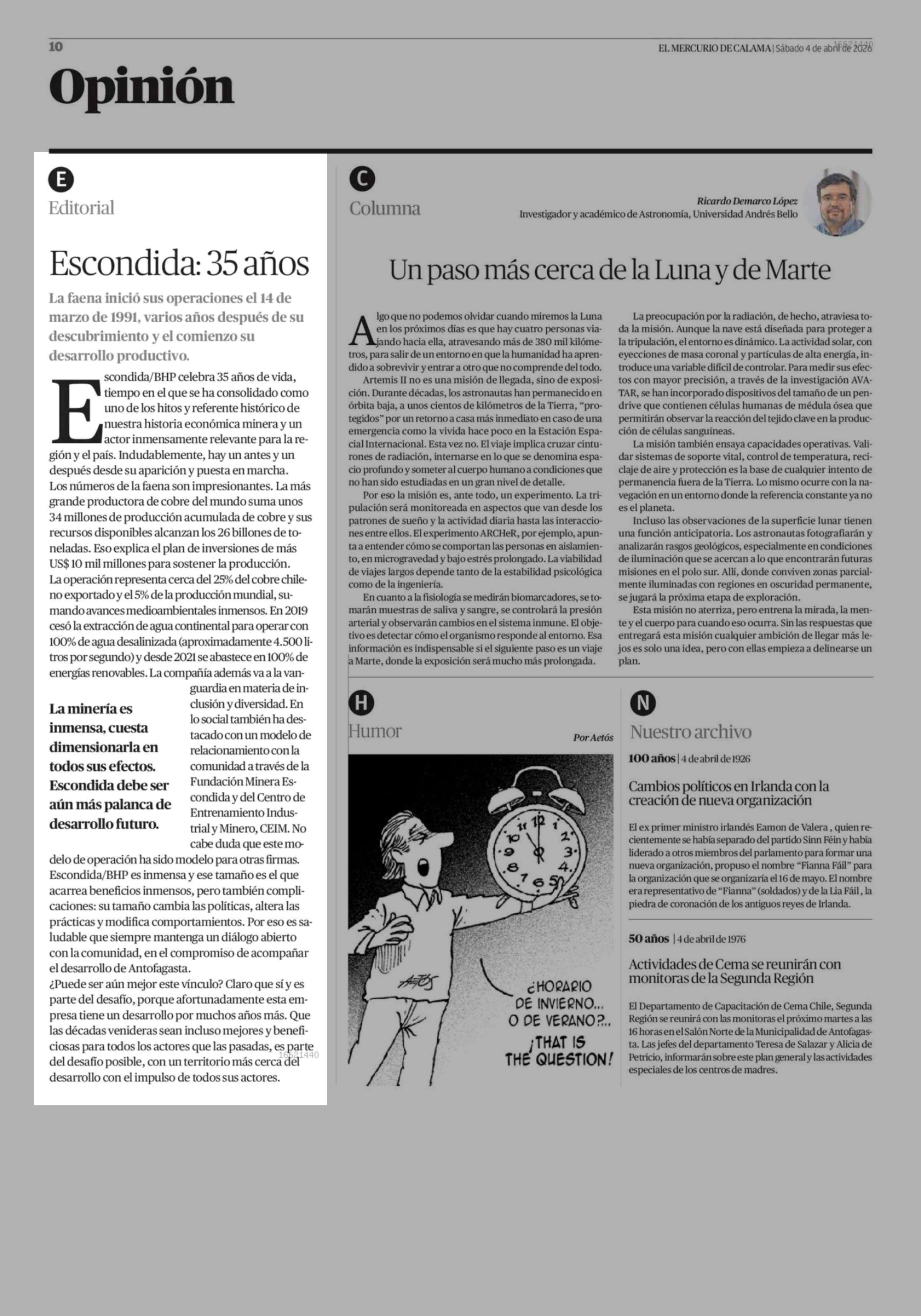 Editorial: Escondida: 35 años 04-04-2026 El Mercurio de Calama |