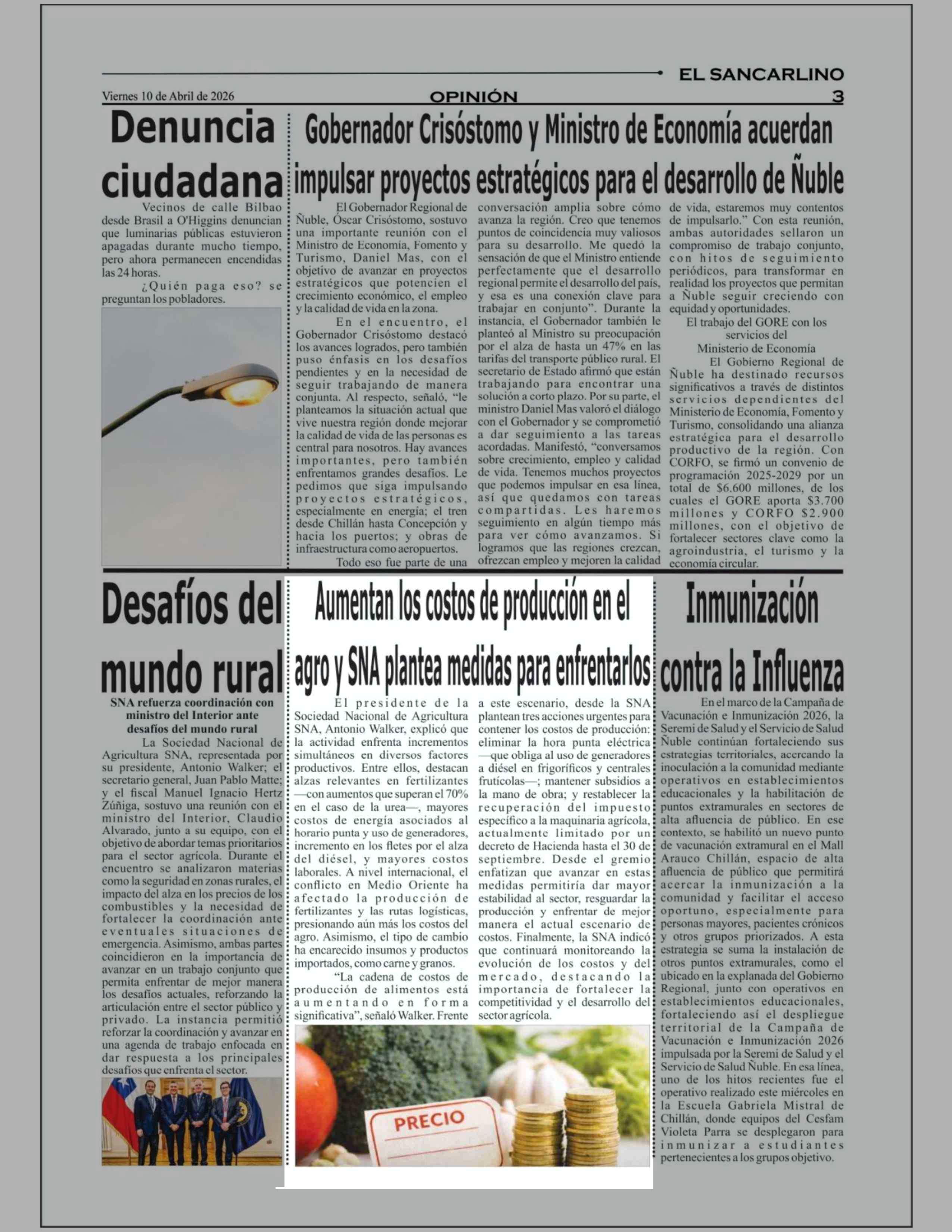 | Fecha: | 10-04-2026 | Sector: | Noticia general | Región: | Región del Ñuble |