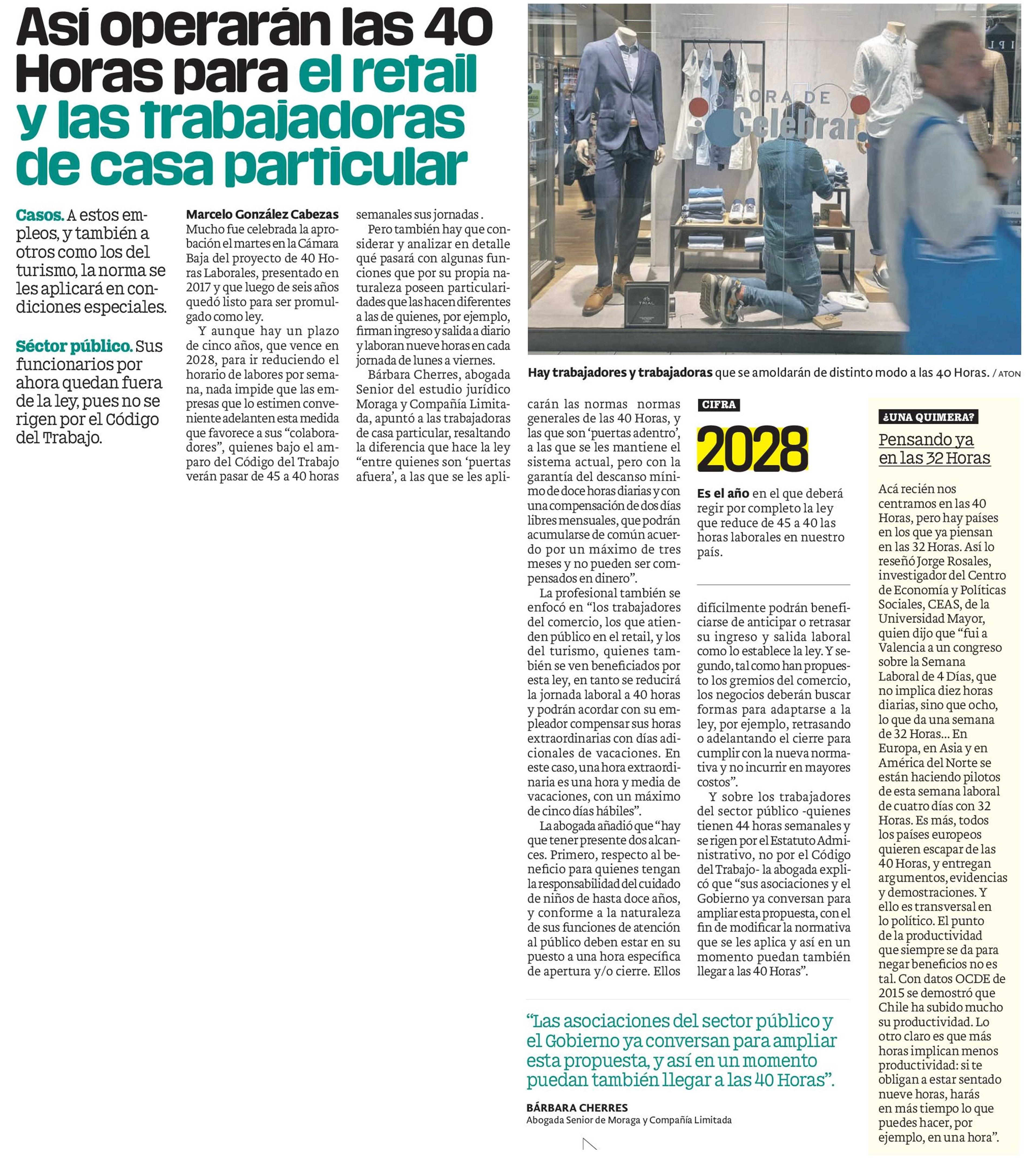 Asi operarán las 40 Horas para el retail y las trabajadoras de casa particular 13-04-2023 Publimetro |