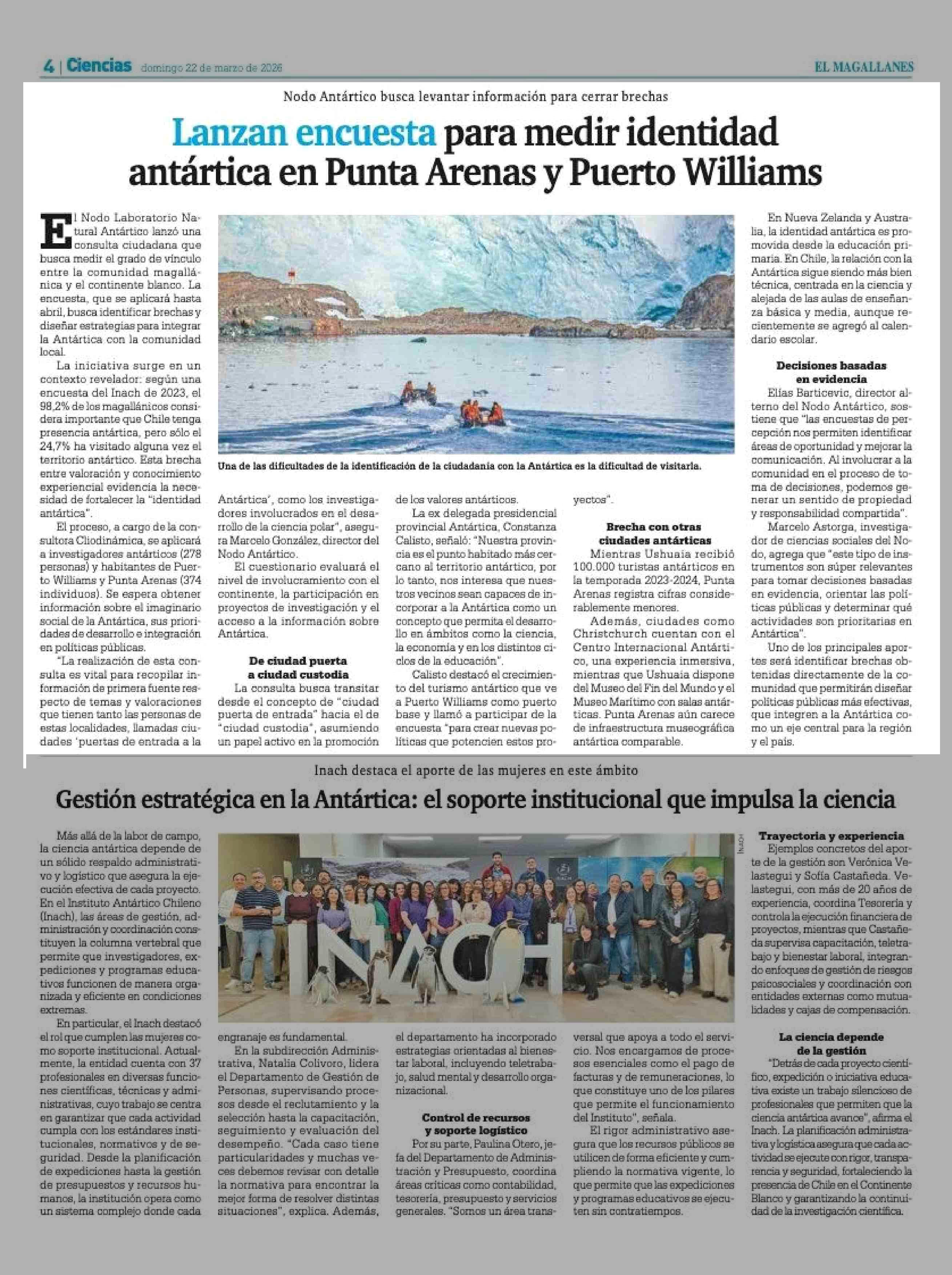 Lanzan encuesta para medir identidad antártica en Punta Arenas y Puerto Williams 22-03-2026 El Magallanes |