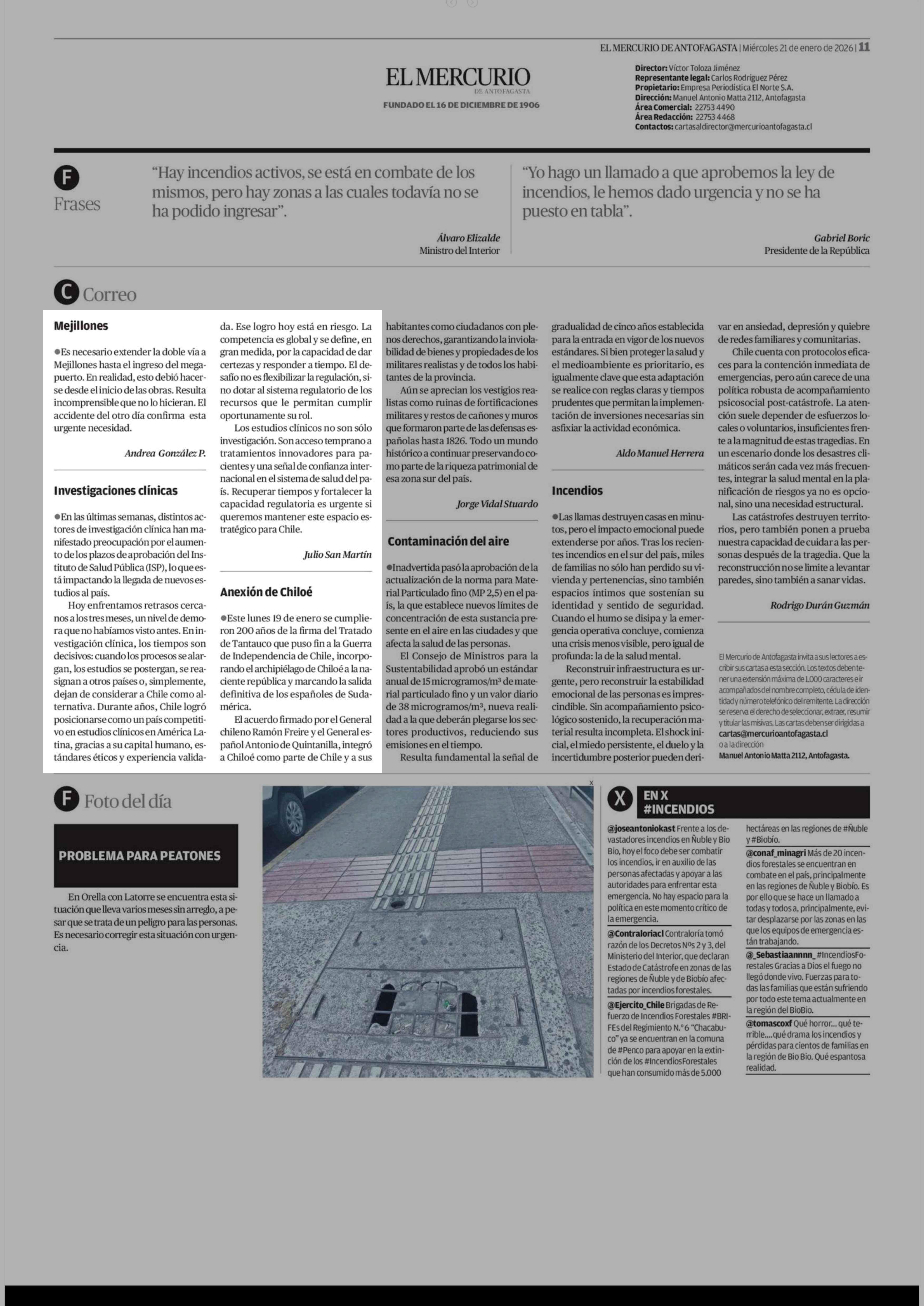 Cartas: Investigaciones clínicas 21-01-2026 El Mercurio de Antofagasta |