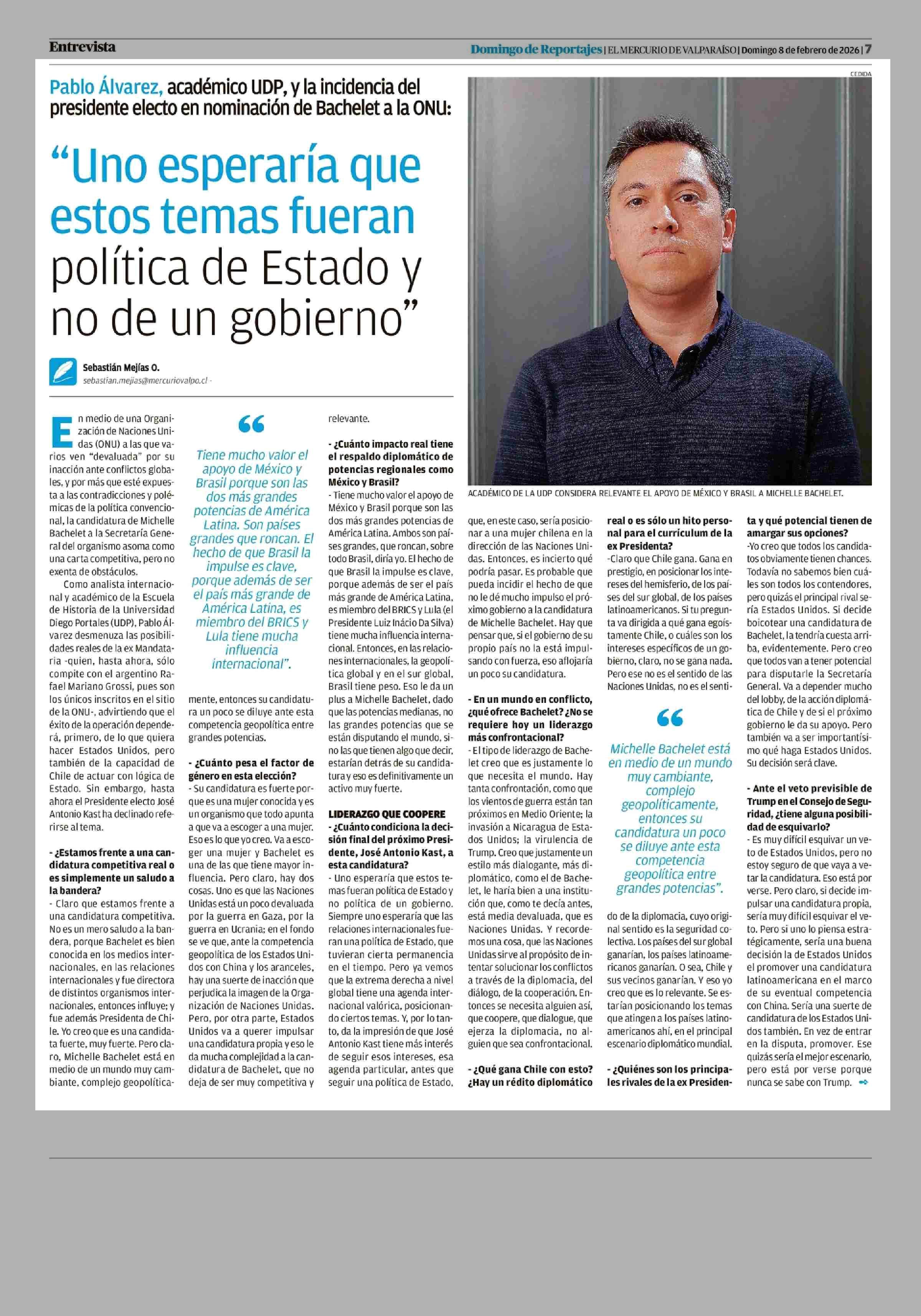 "Uno esperaría que estos temas fueran política de Estado y no de un gobierno" 08-02-2026 El Mercurio de Valparaíso |
