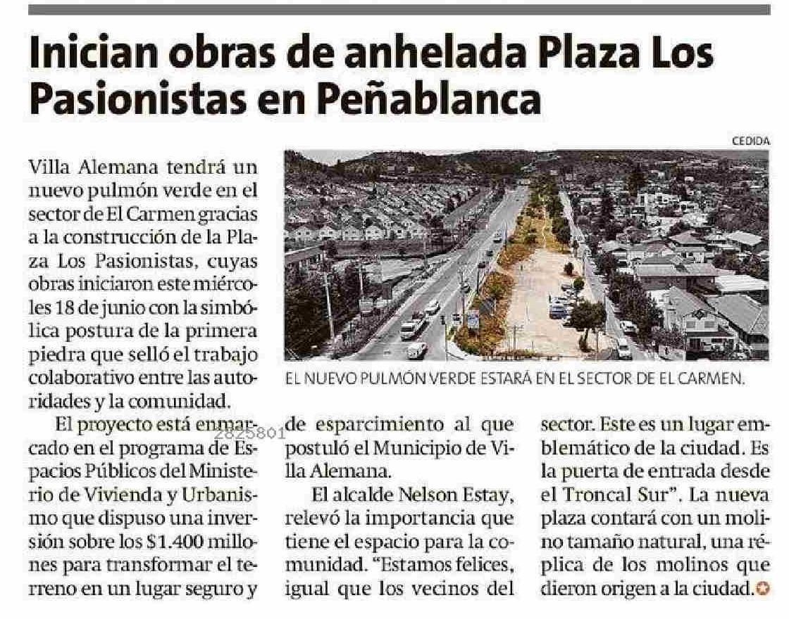 Inician obras de anhelada Plaza Los Pasionistas en Peñablanca 20-06-2025 La Estrella de Valparaíso |
