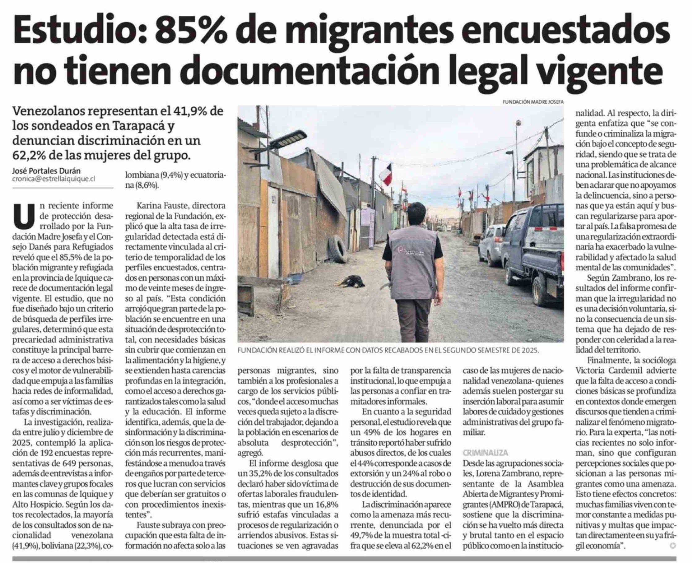 Título: Estudio: 85% de migrantes encuestados no tienen documentación legal vigente