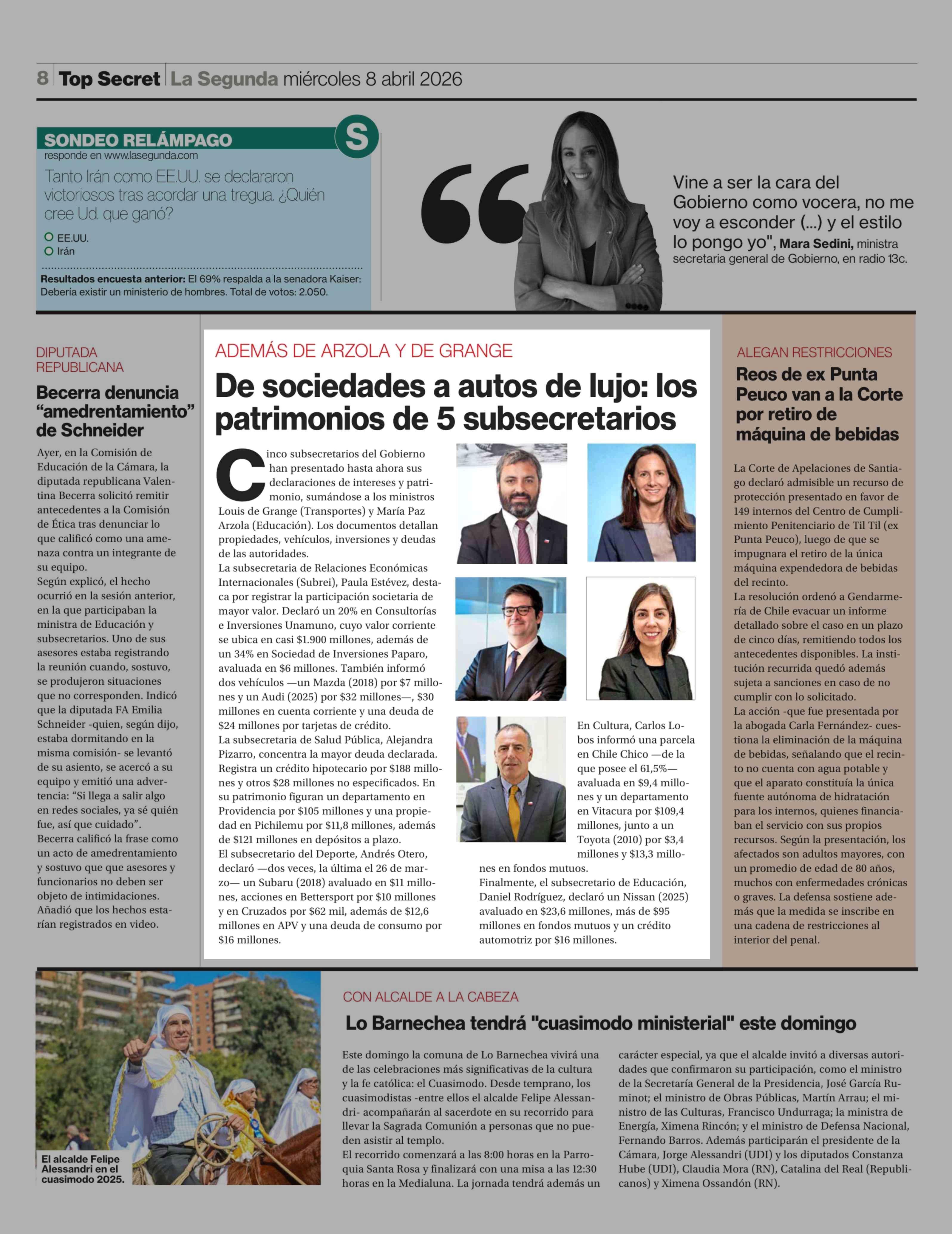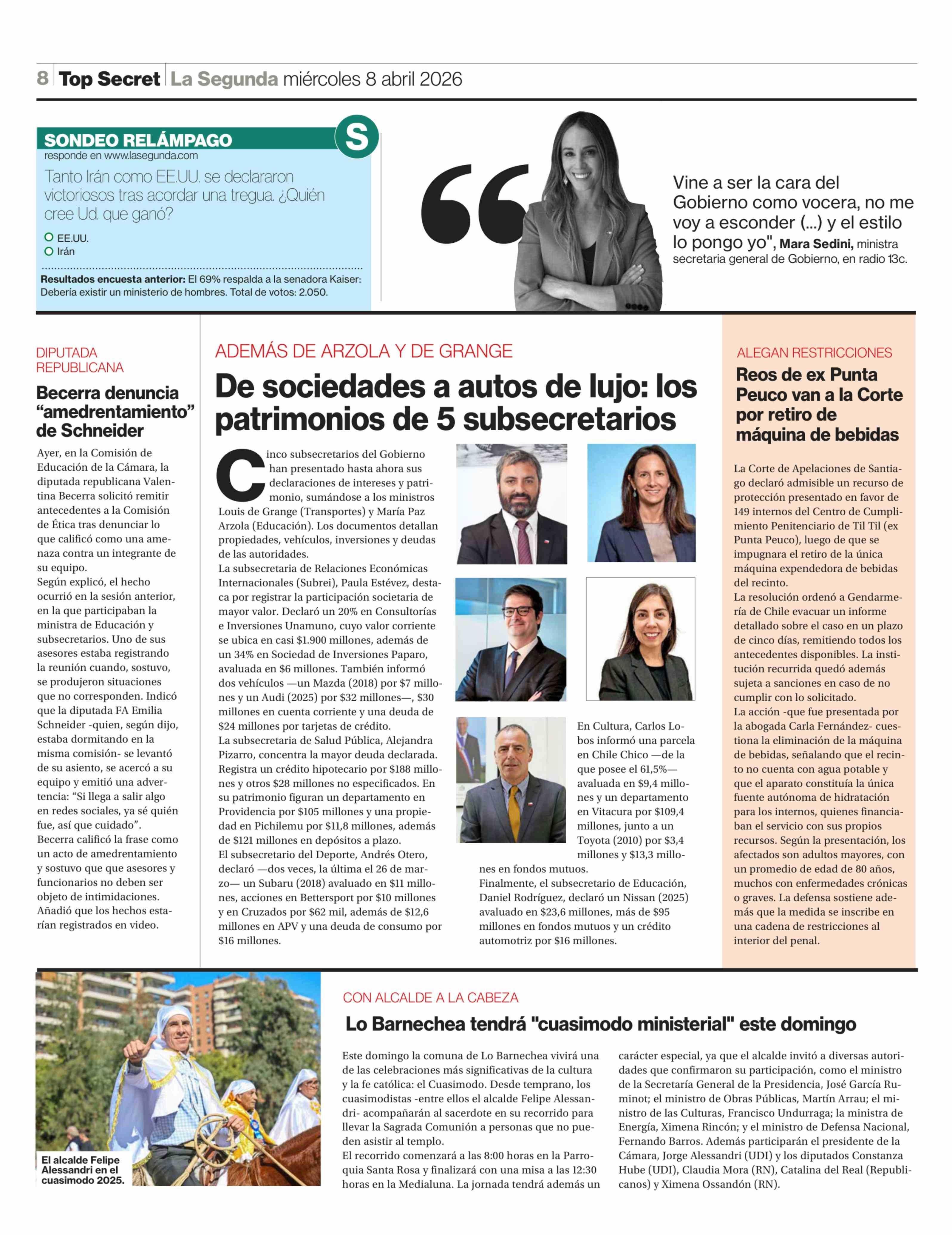 De sociedades a autos de lujo: los patrimonios de 5 subsecretarios 08-04-2026 La Segunda |