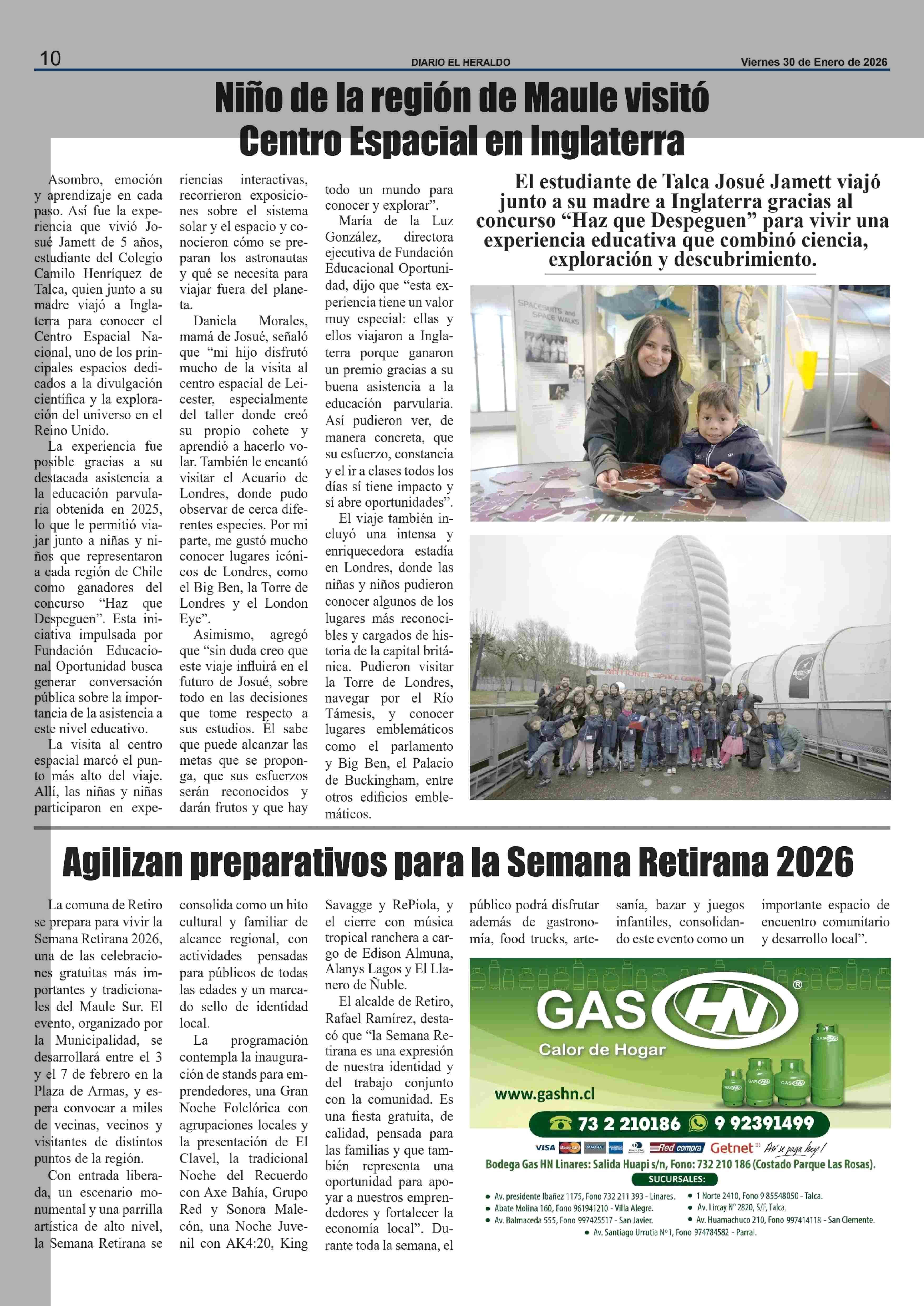 Fecha: 30-01-2026 Sector: Noticia general Región: Región del Maule