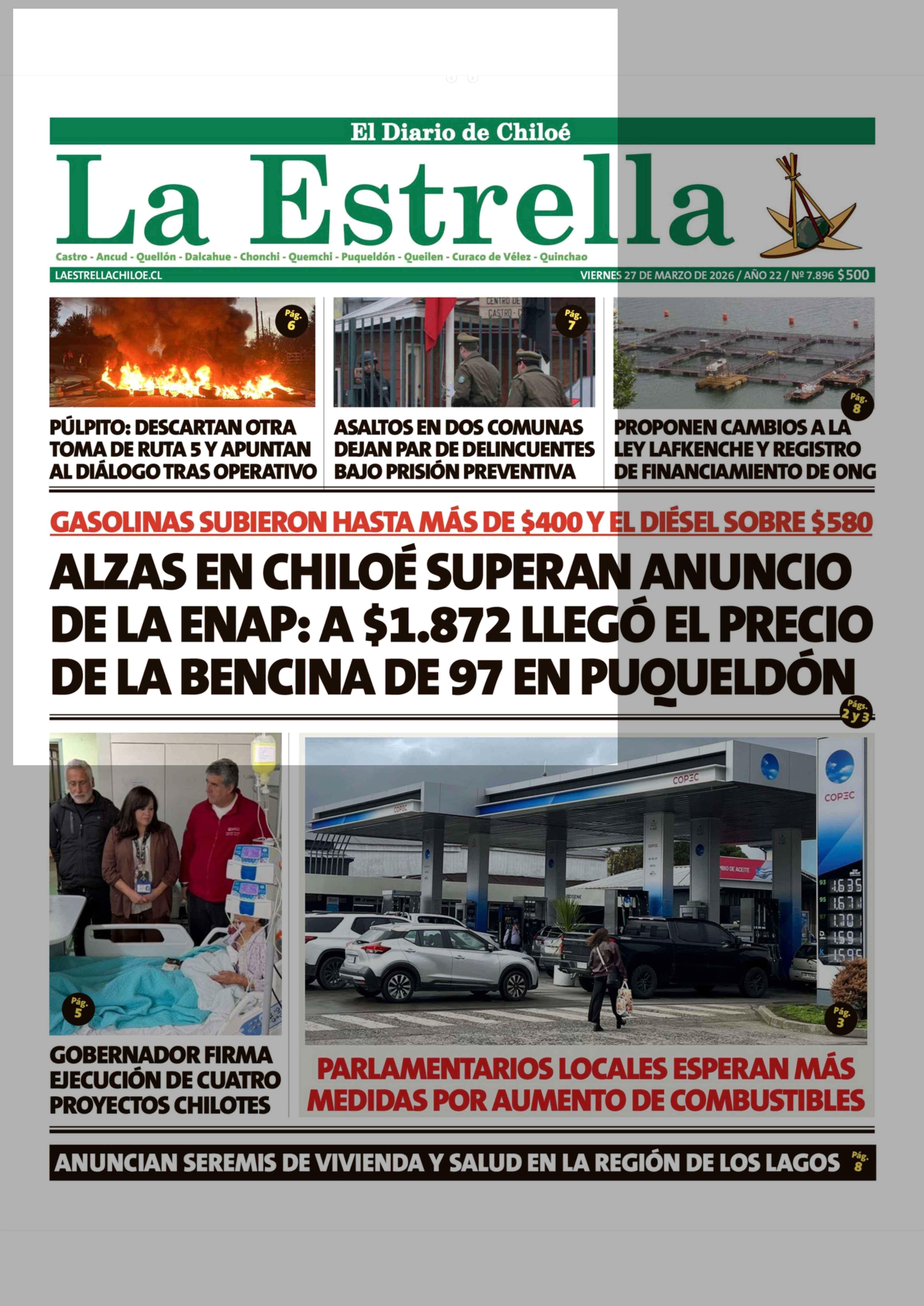 PORTADA LA ESTRELLA DE CHILOÉ - CHILE 27-03-2026 La Estrella de Chiloé |