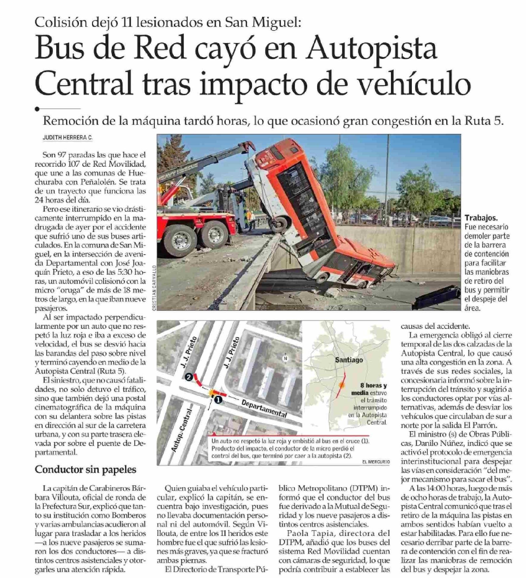 | Título: | Bus de Red cayó en Autopista Central tras impacto de vehículo |