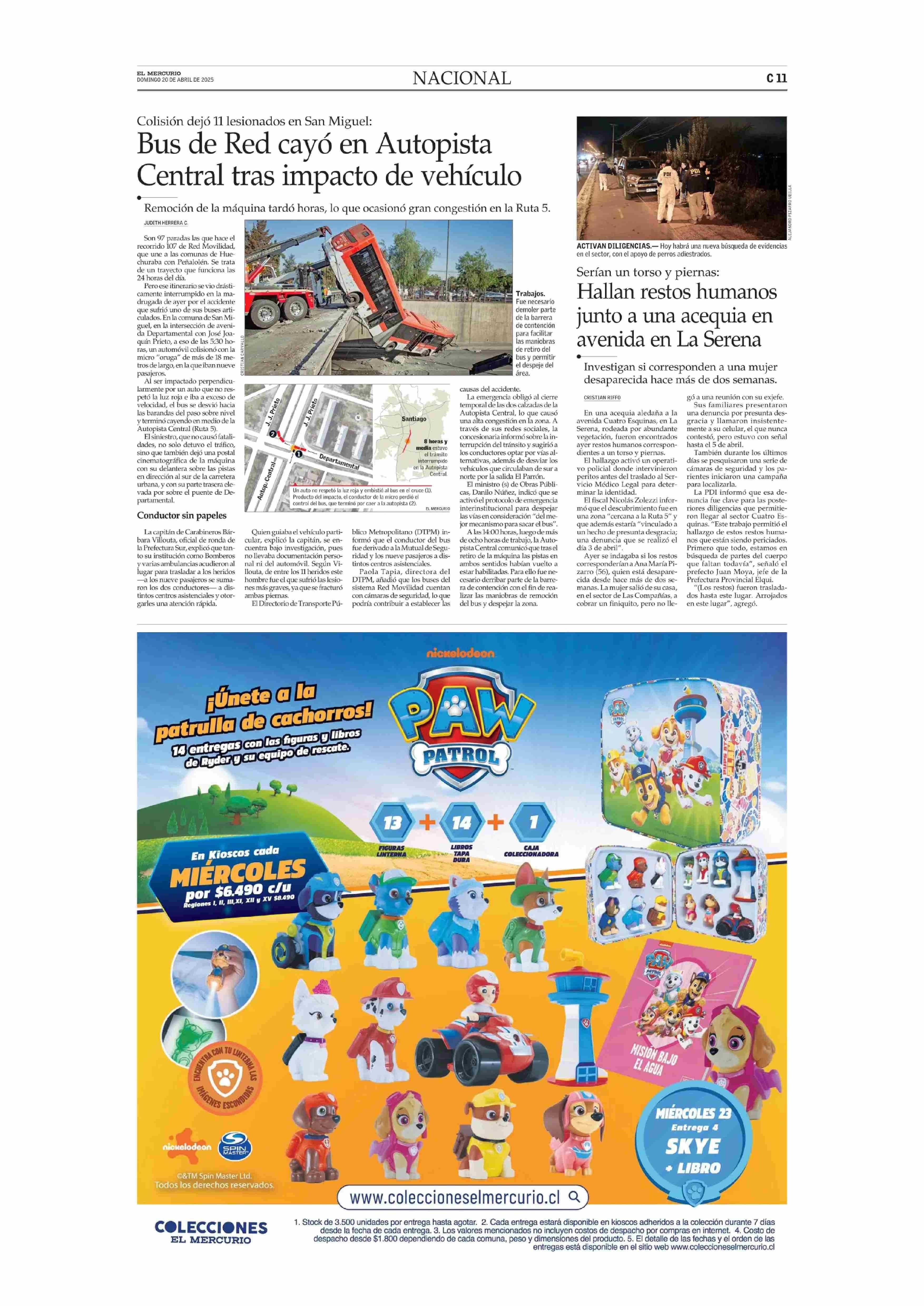 Bus de Red cayó en Autopista Central tras impacto de vehículo 20-04-2025 El Mercurio |