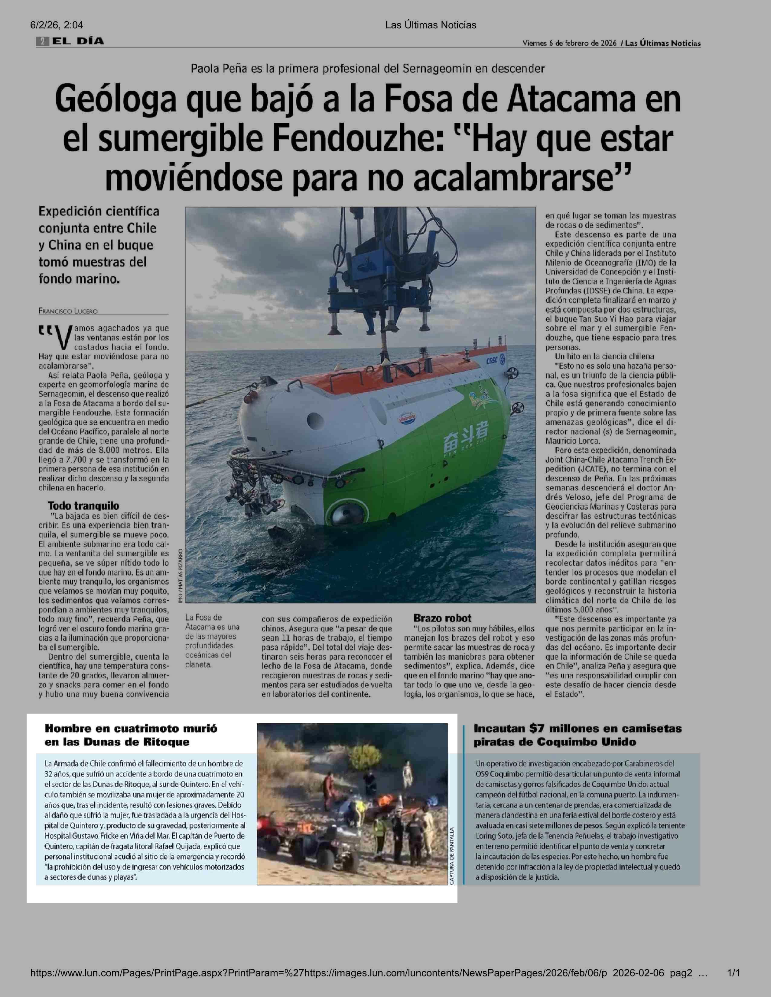 Hombre en cuatrimoto murió en las Dunas de Ritoque 06-02-2026 Las Últimas Noticias |