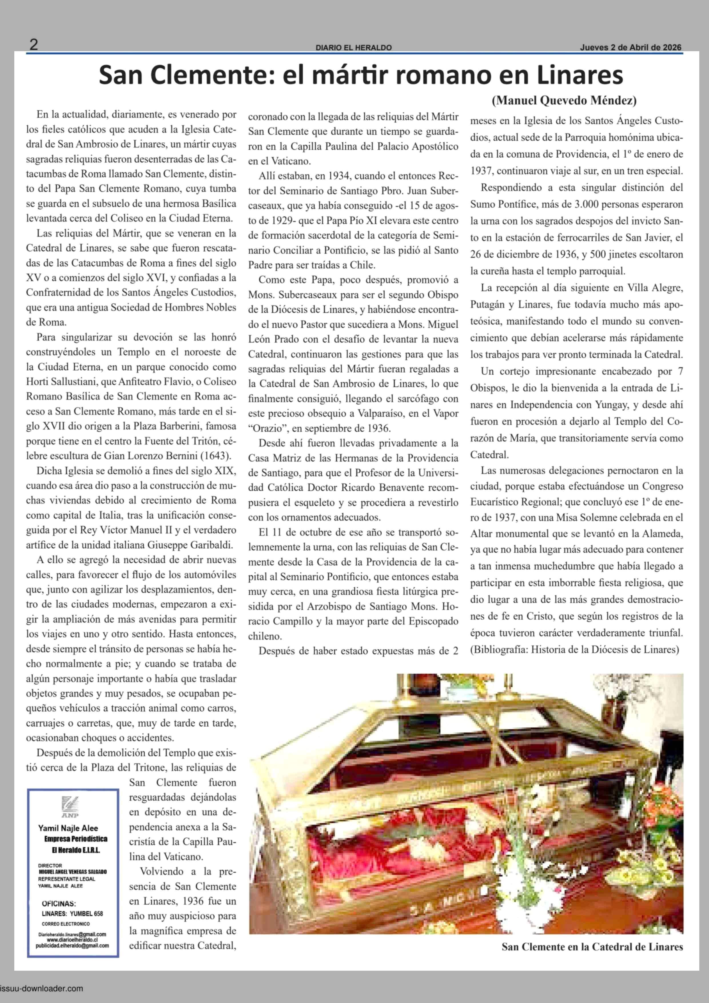 Título: San Clemente: el mártir romano en Linares