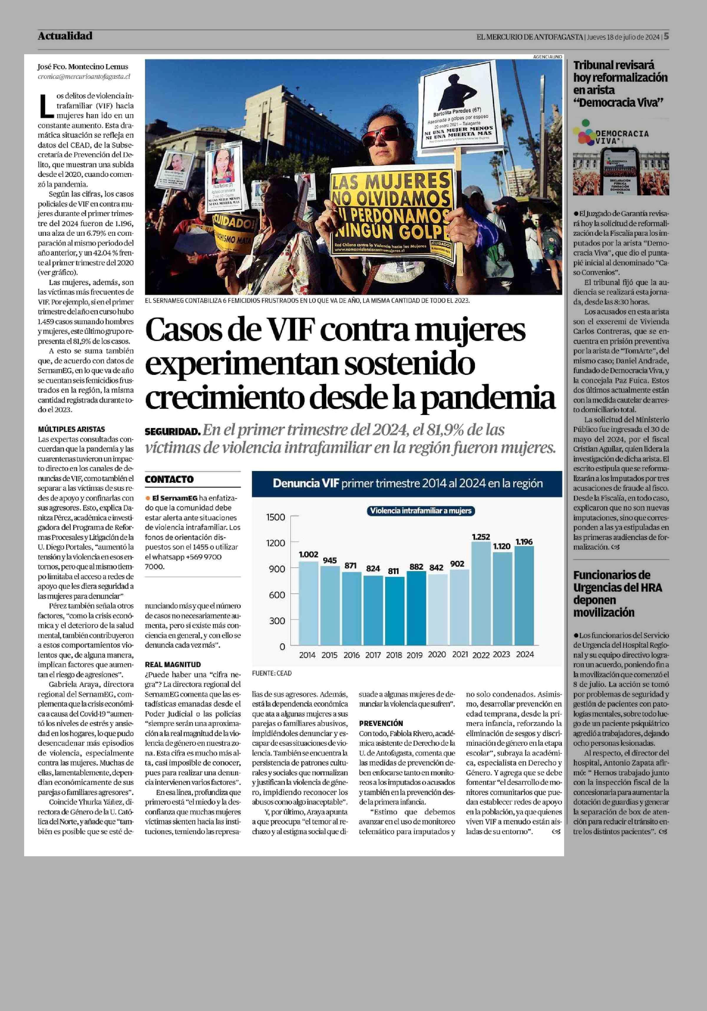Casos de VIF contra mujeres experimentan sostenido crecimiento desde la pandemia 18-07-2024 El Mercurio de Antofagasta |
