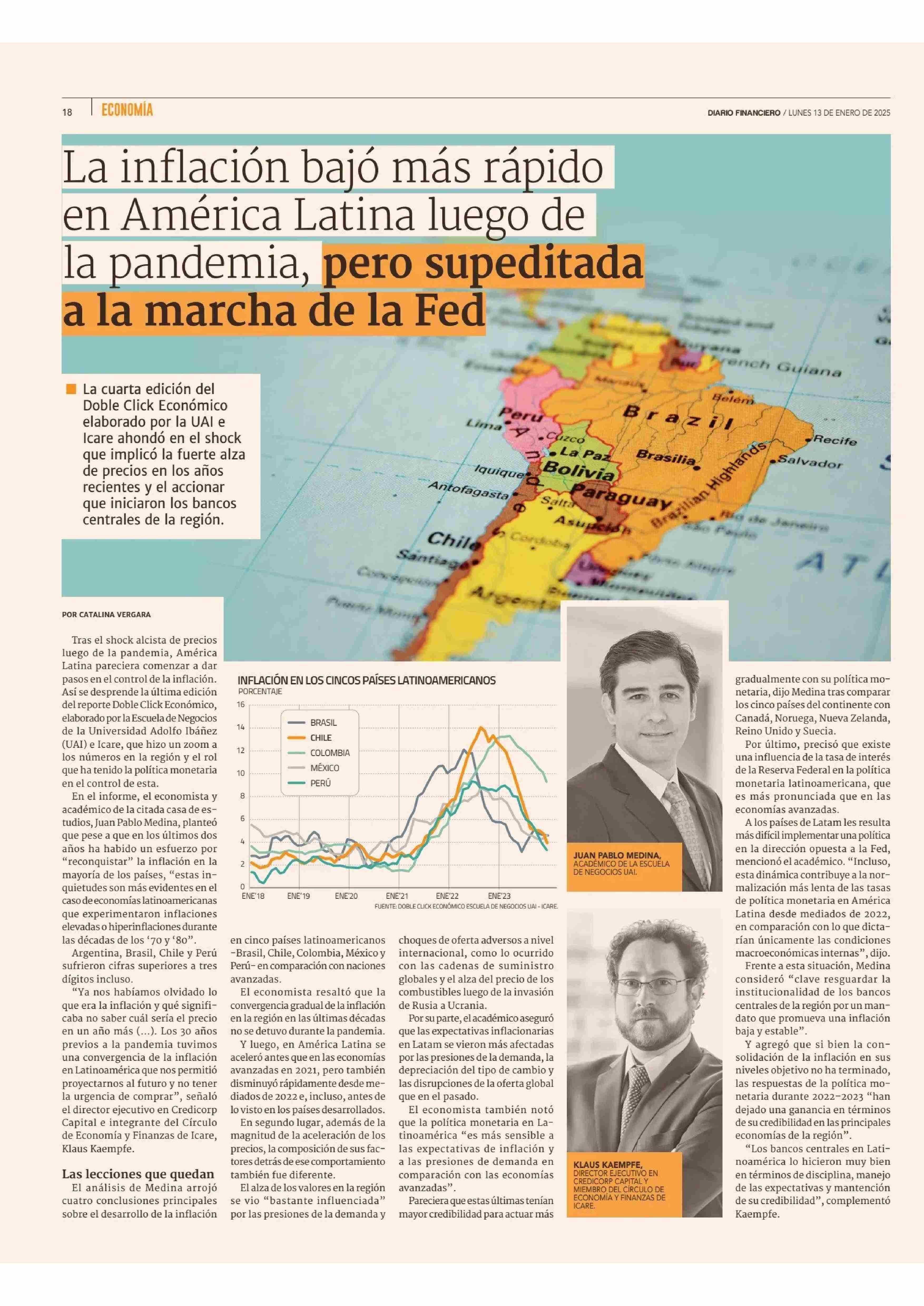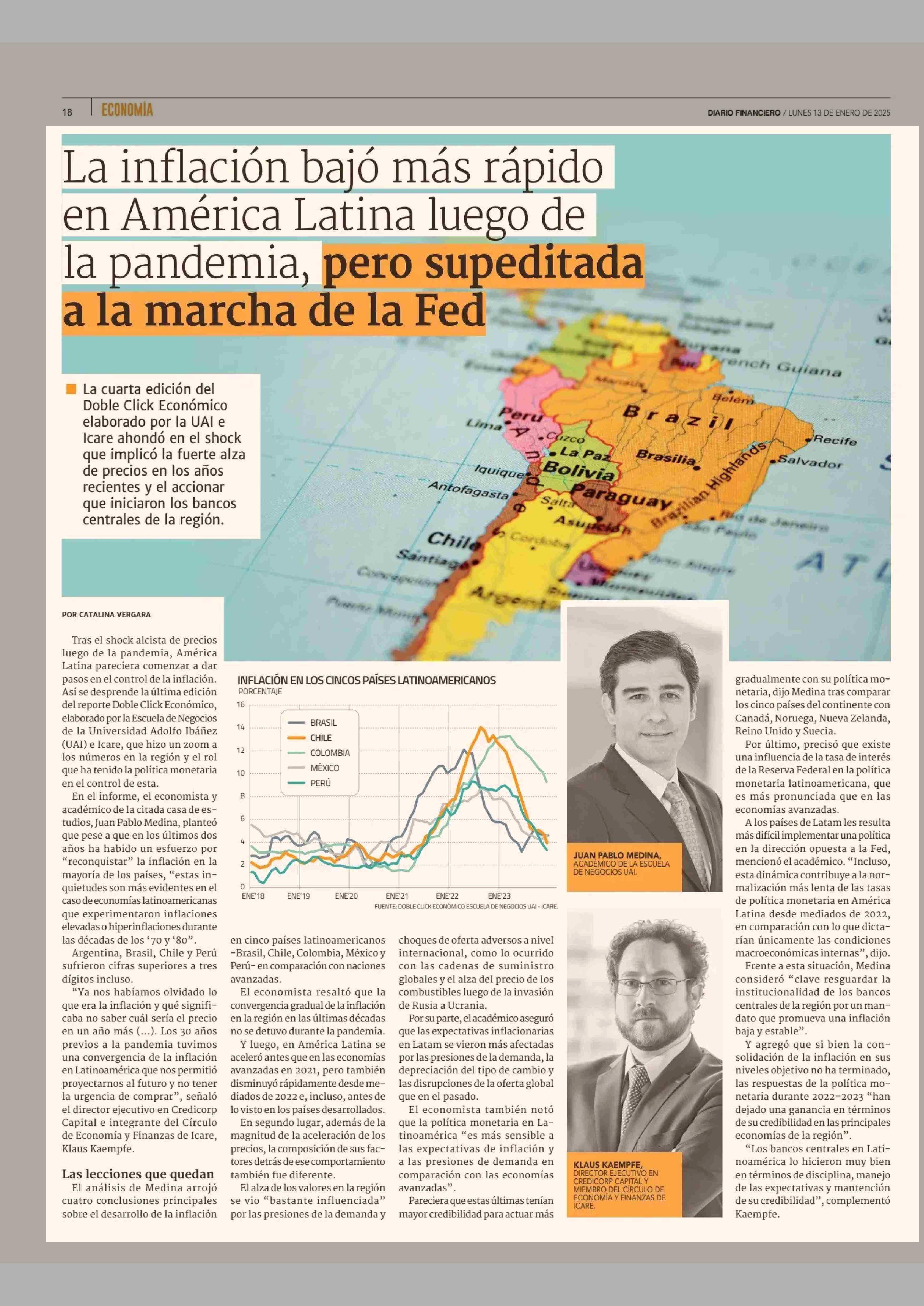 La inflación bajó más rapido en América Latina luego de la pandemia, pero supeditada a la marcha de la Fed 13-01-2025 Diario Financiero |