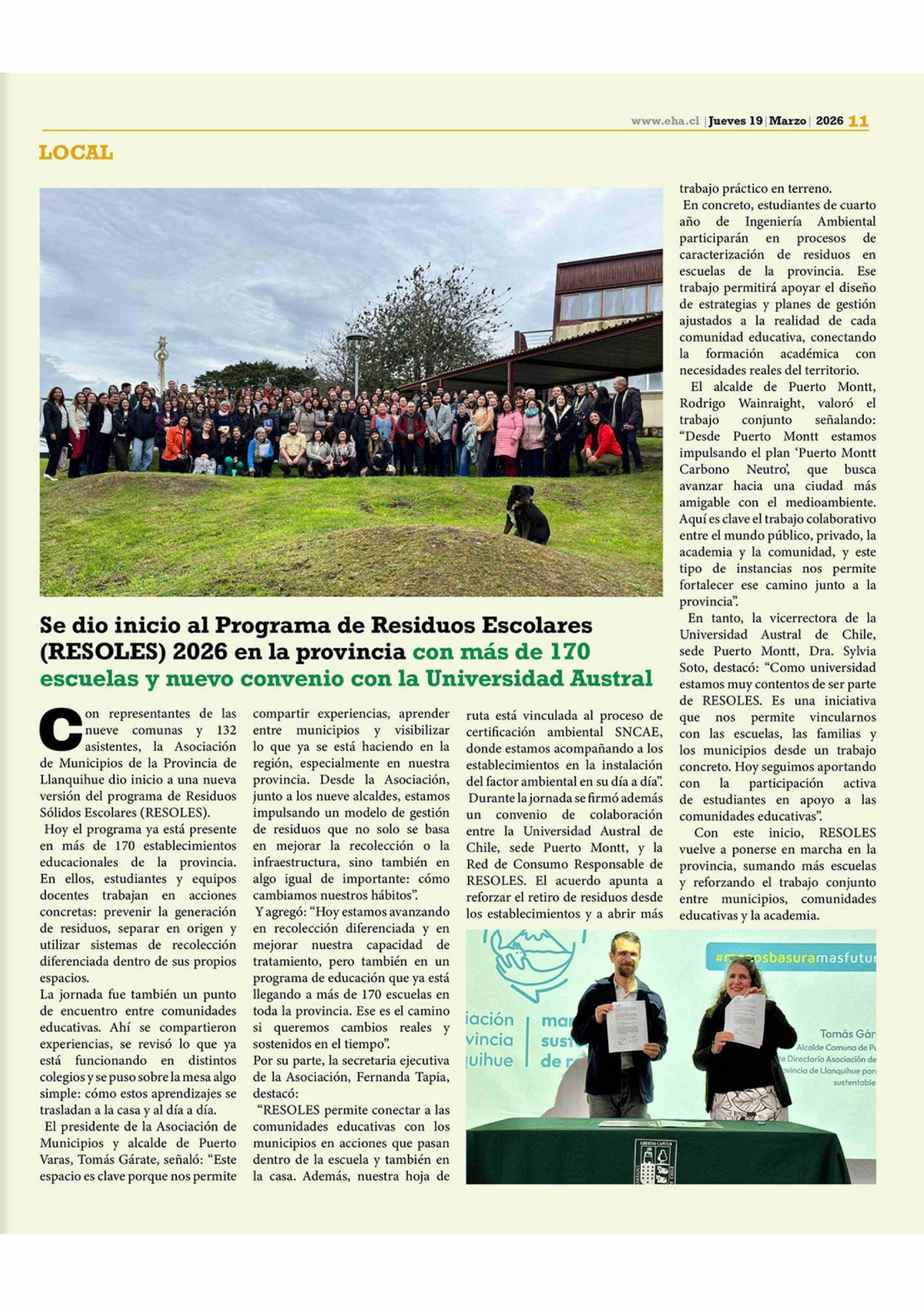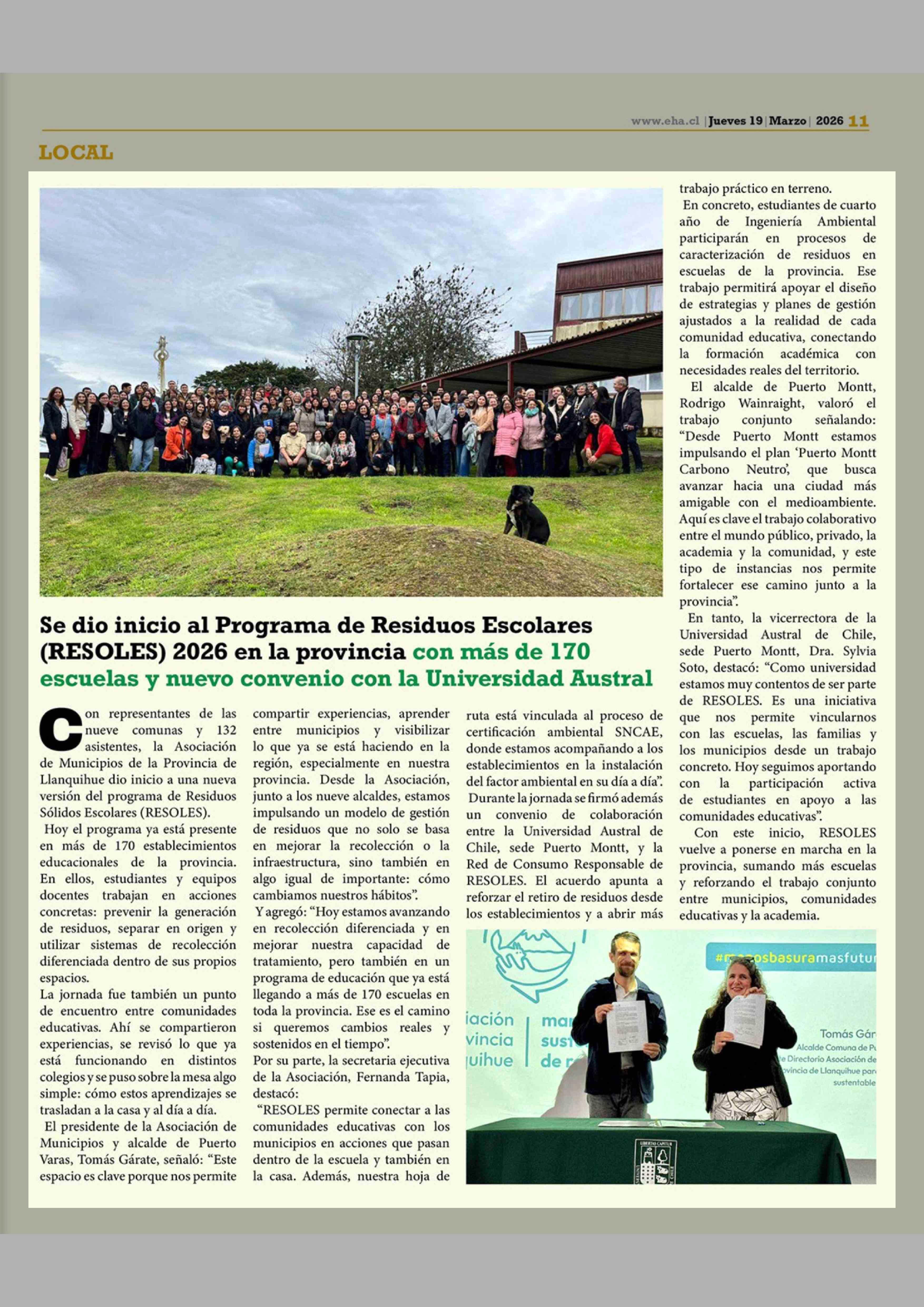 Título: Se dio inicio al Programa de Residuos Escolares (RESOLES) 2026 en la provincia con más de 170 escuelas y nuevo convenio con la Universidad Austral
