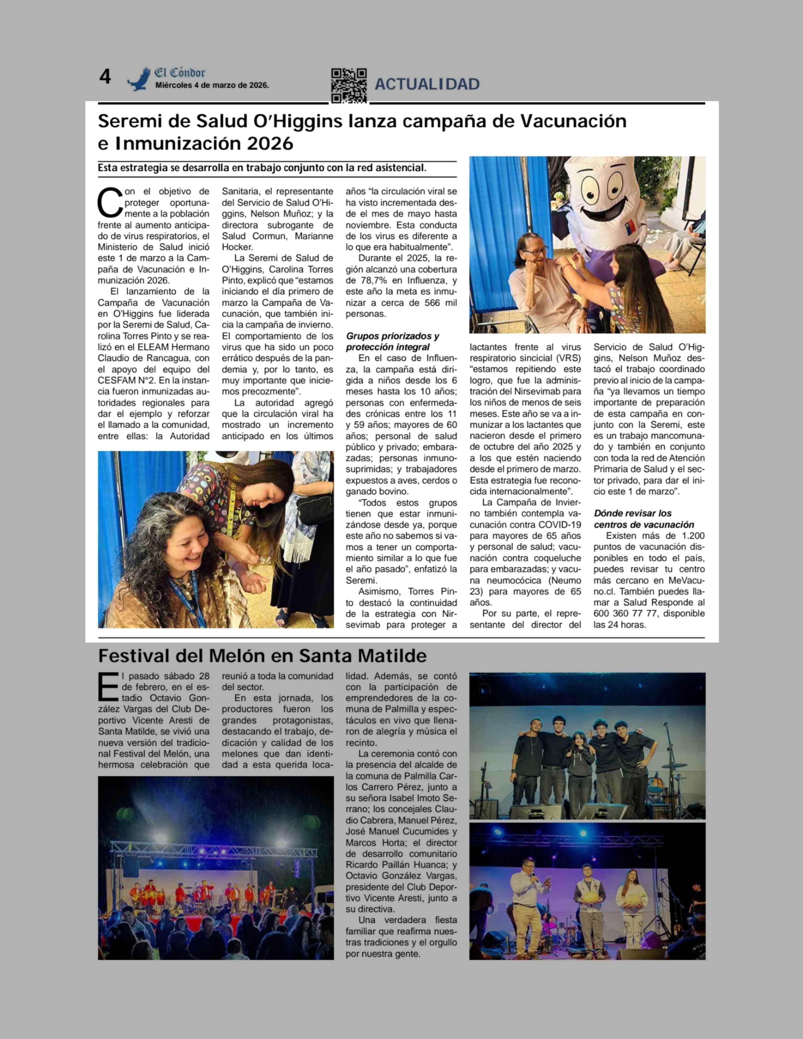 | Fecha: | 04-03-2026 | Sector: | Noticia general | Región: | Región del Libertador General Bernardo O'Higgins |