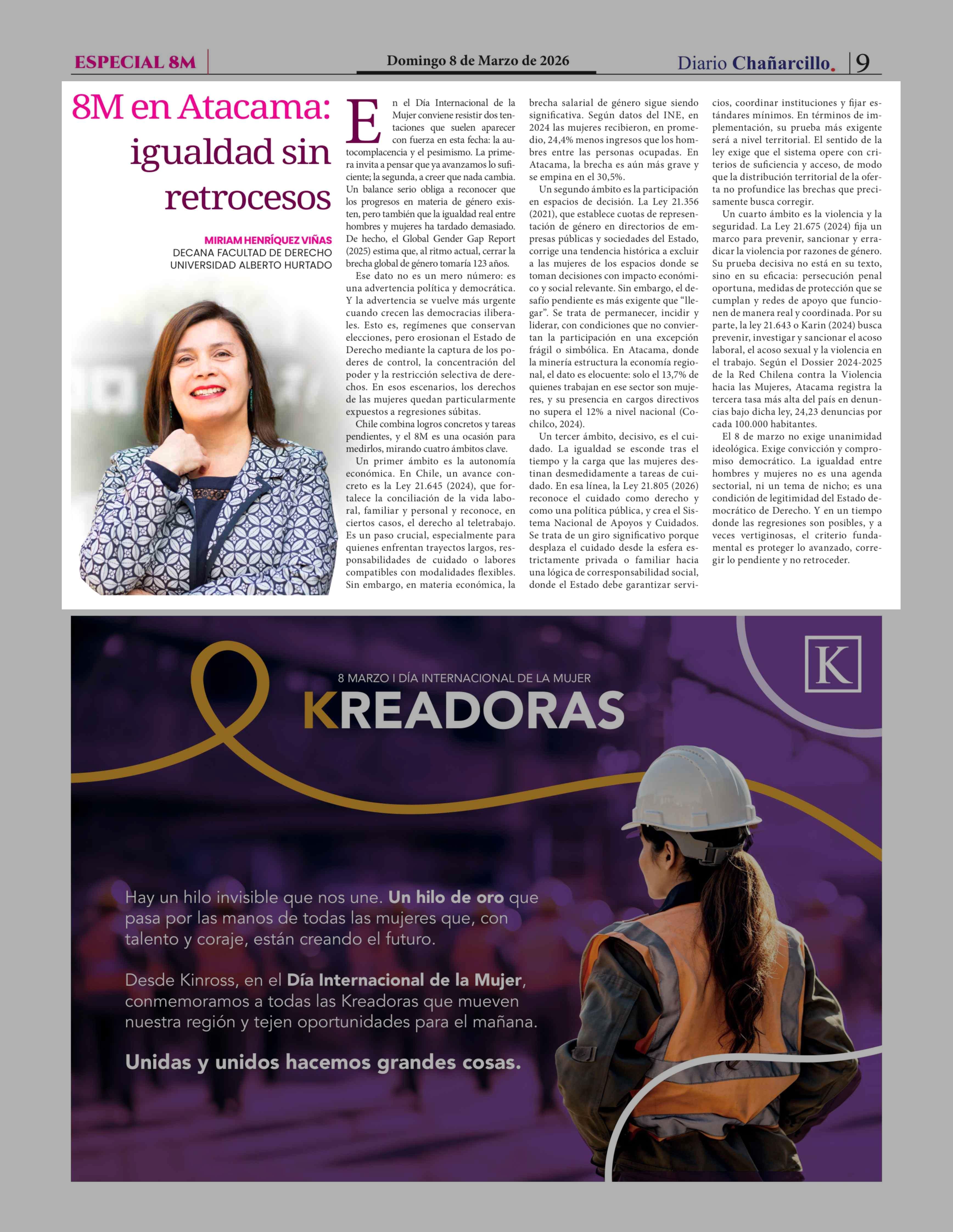 Igualdad sin retrocesos 08-03-2026 Diario Chañarcillo |