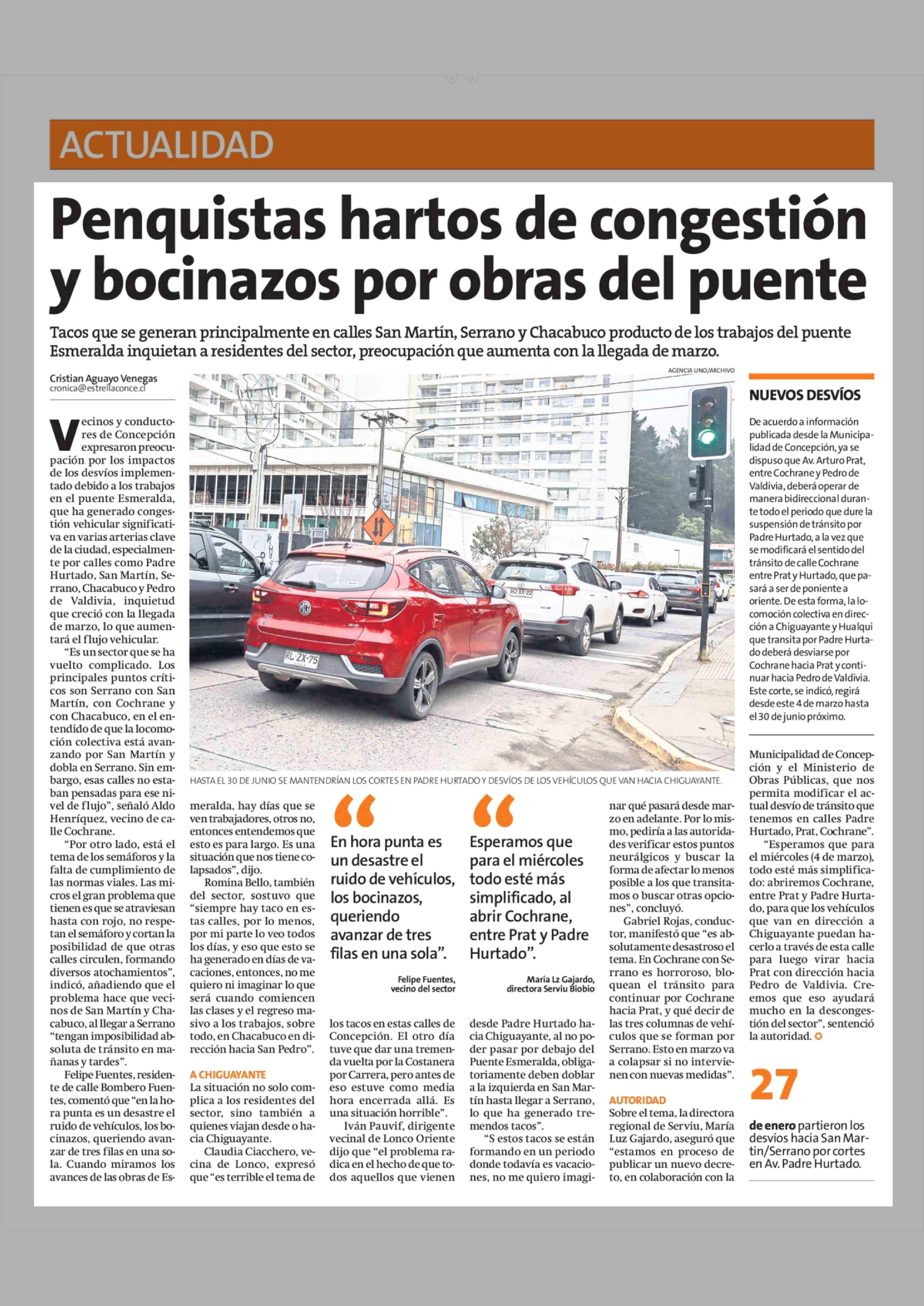 Penquistas hartos de congestión y bocinazos por obras del puente 02-03-2026 La Estrella de Concepción |