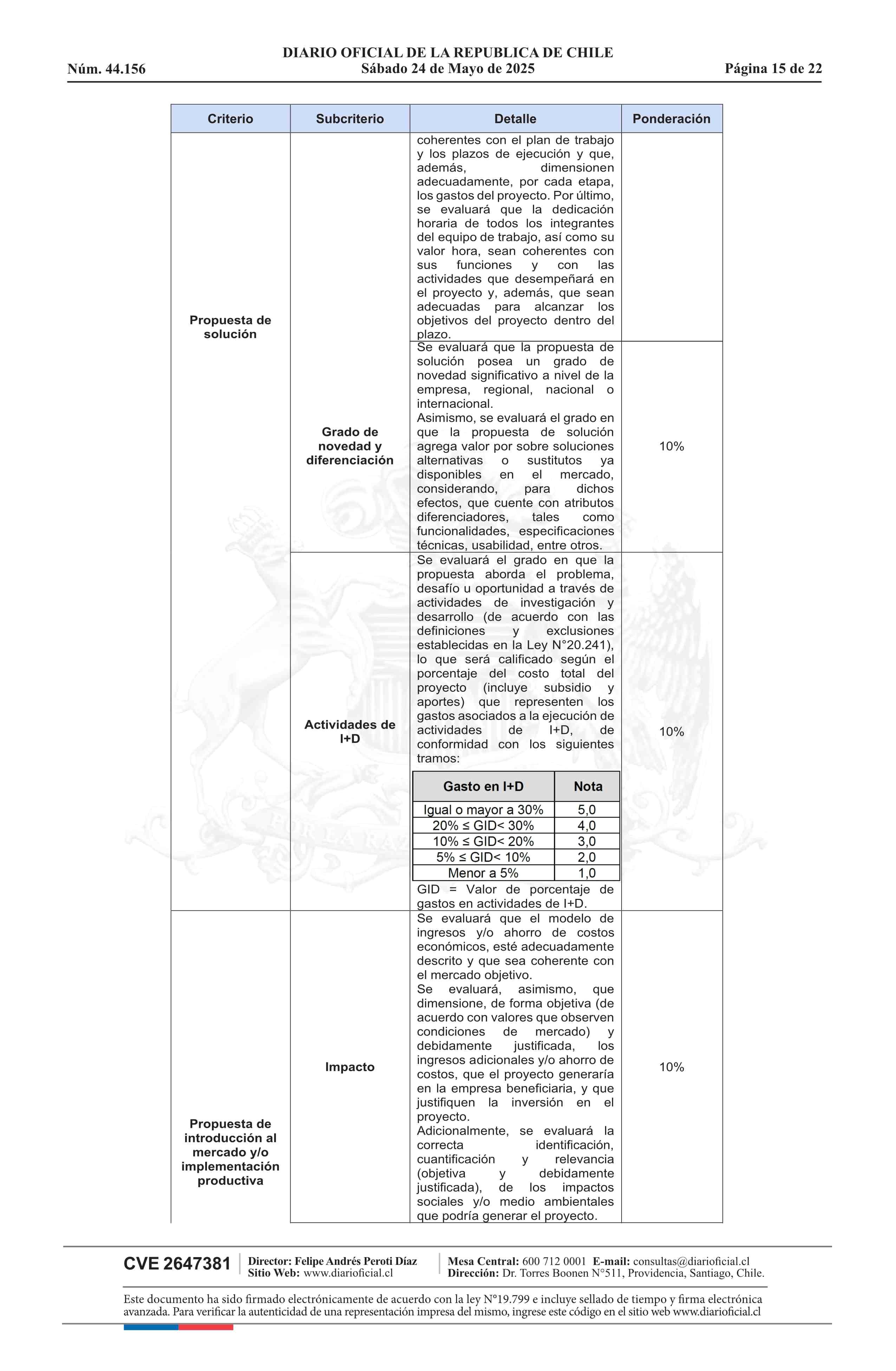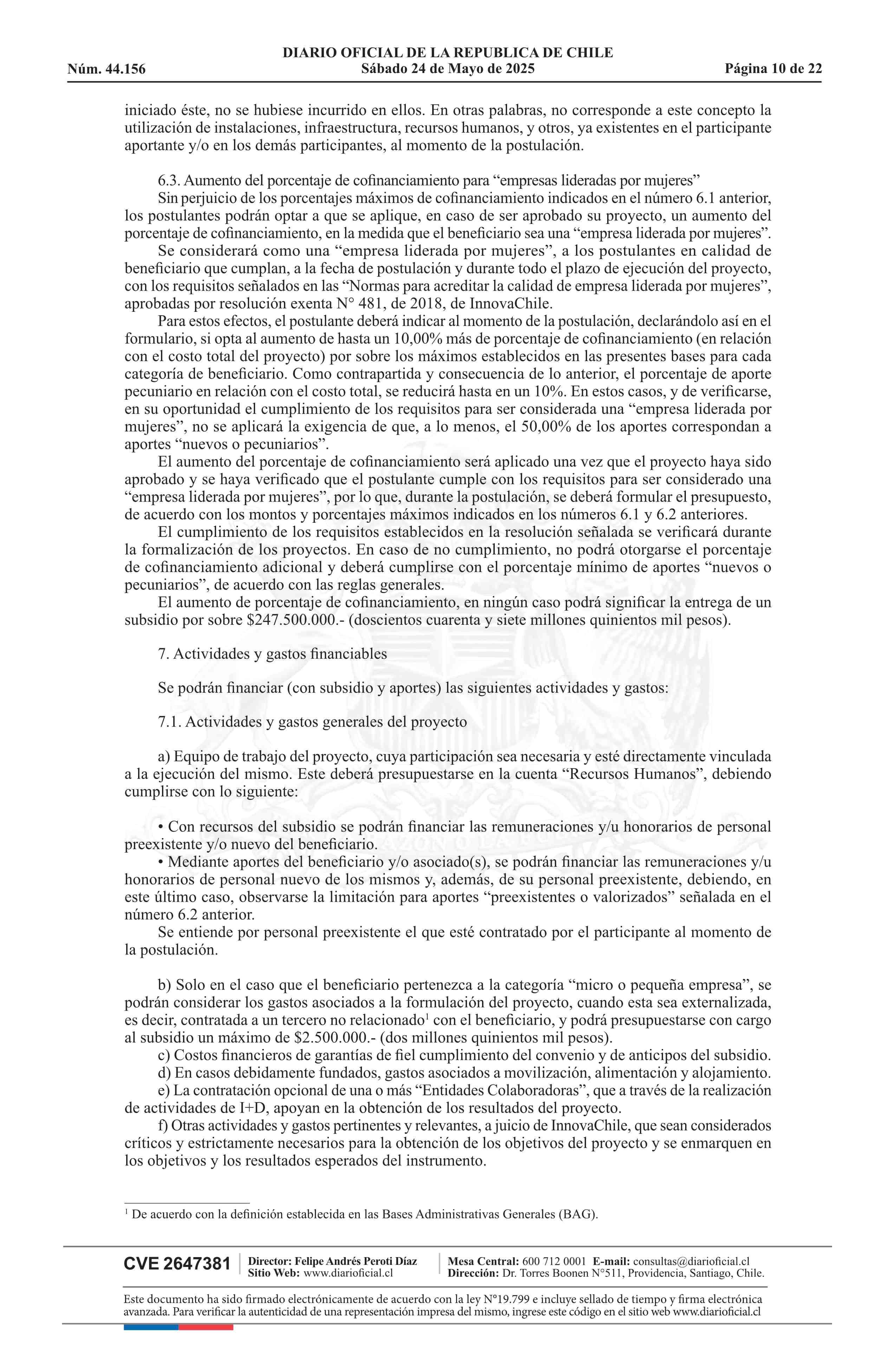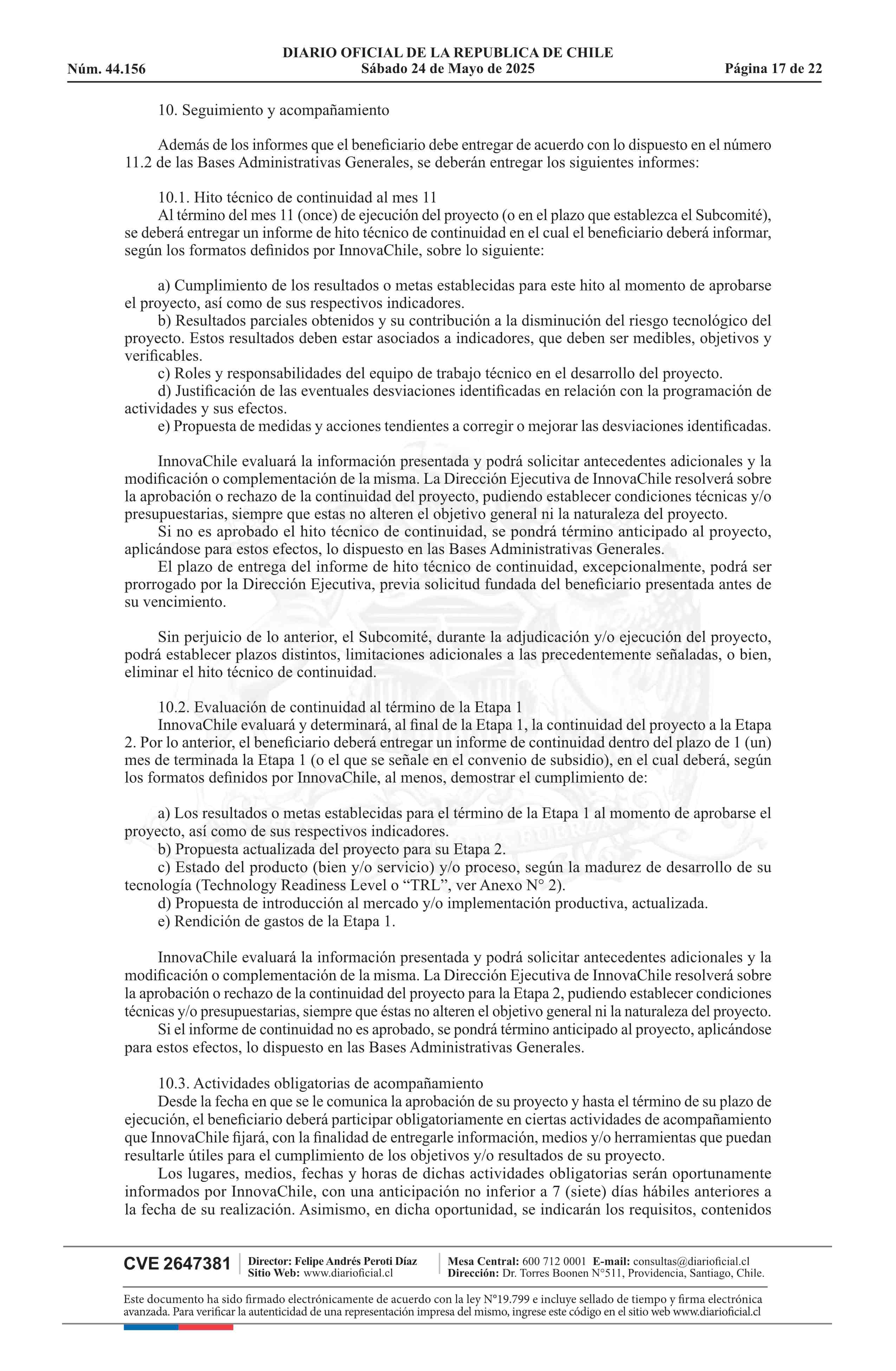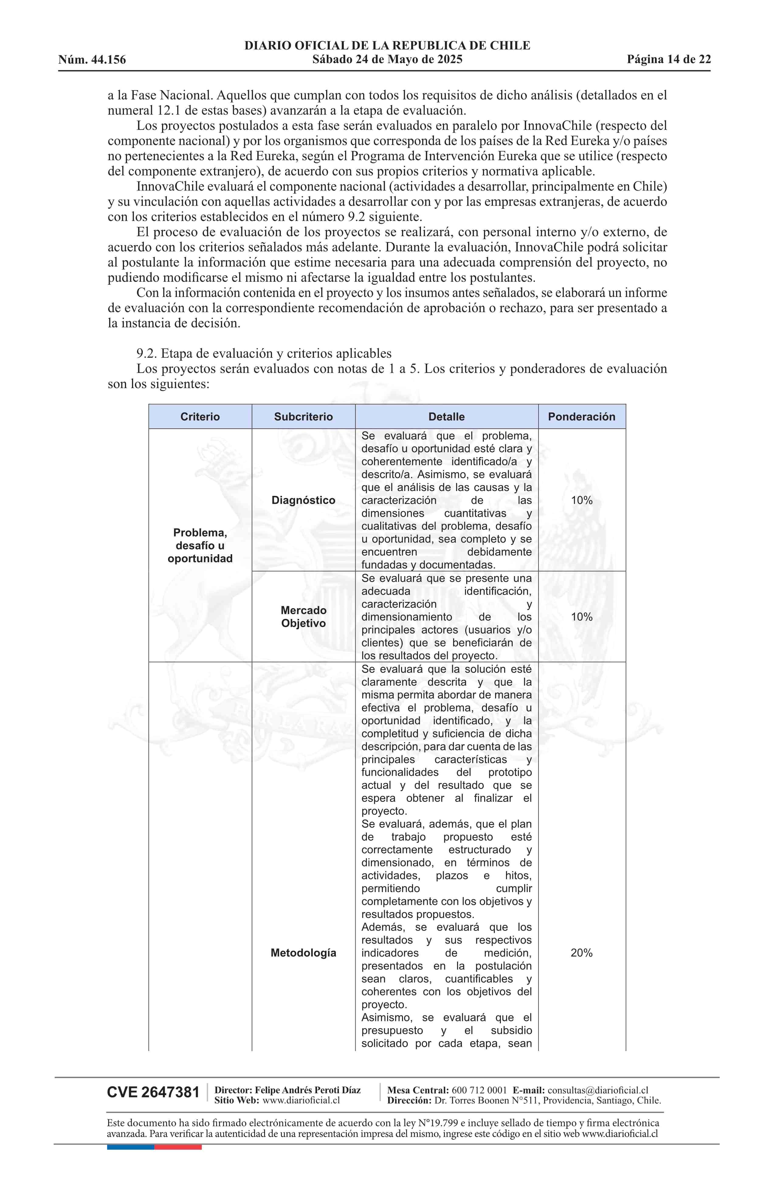 Resolución exenta número 156, de 2025.- Modifica instrumento de financiamiento denominado Crea y Valida - Eureka y aprueba el nuevo texto de sus bases y anexos 24-05-2025 Diario Oficial Edición Electrónica |