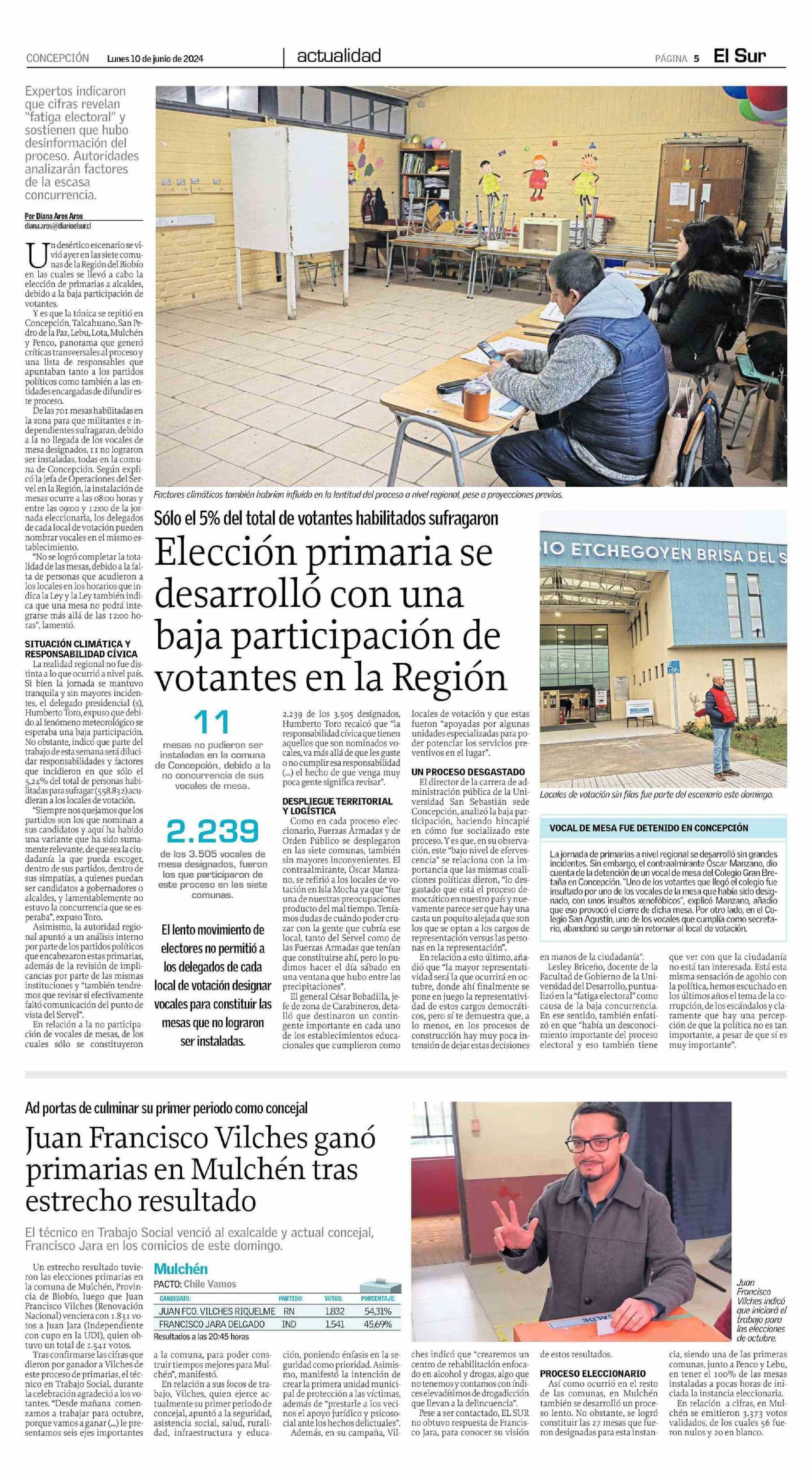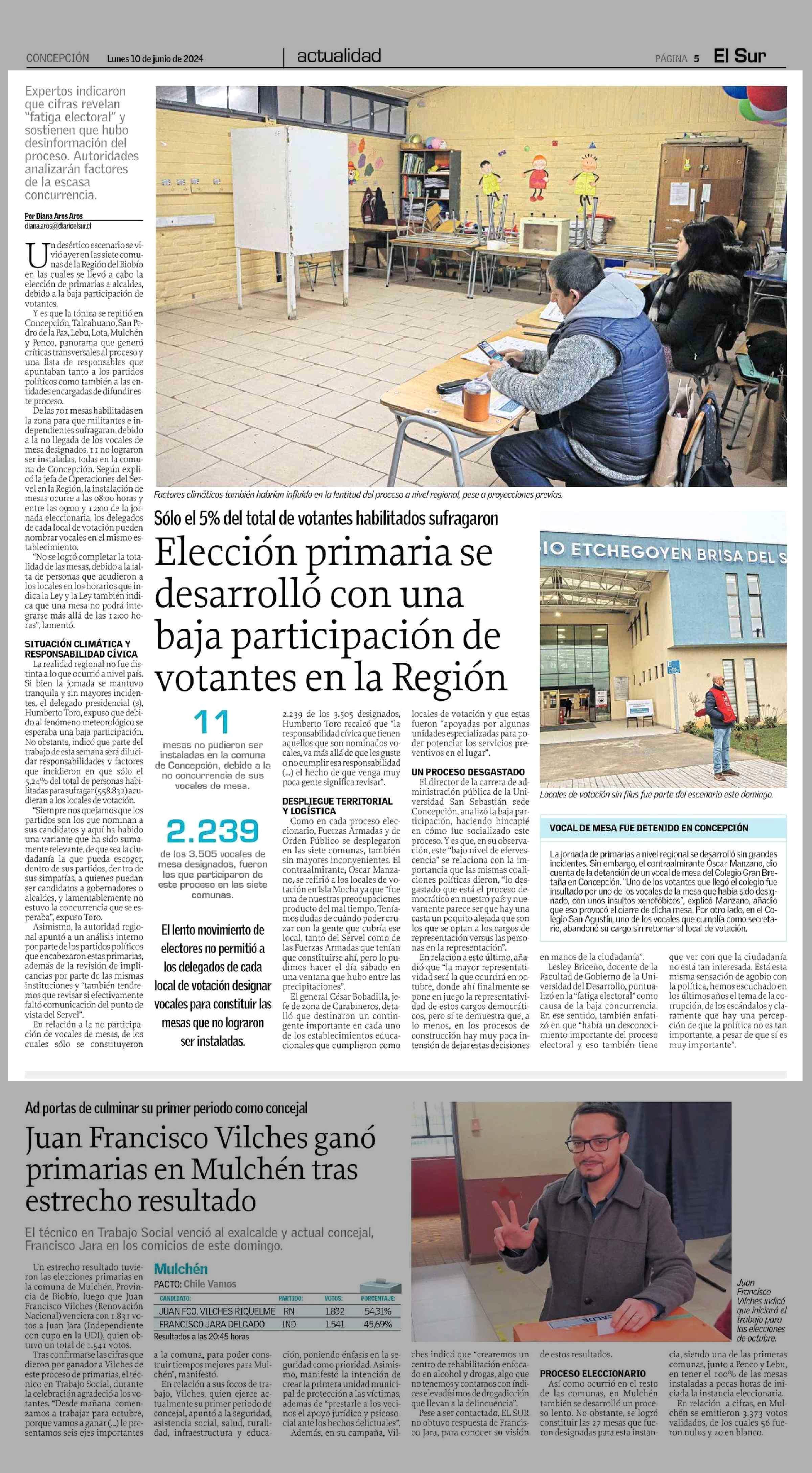 Elección primaria se desarrolló con una baja participación de votantes en la Región 10-06-2024 El Sur |