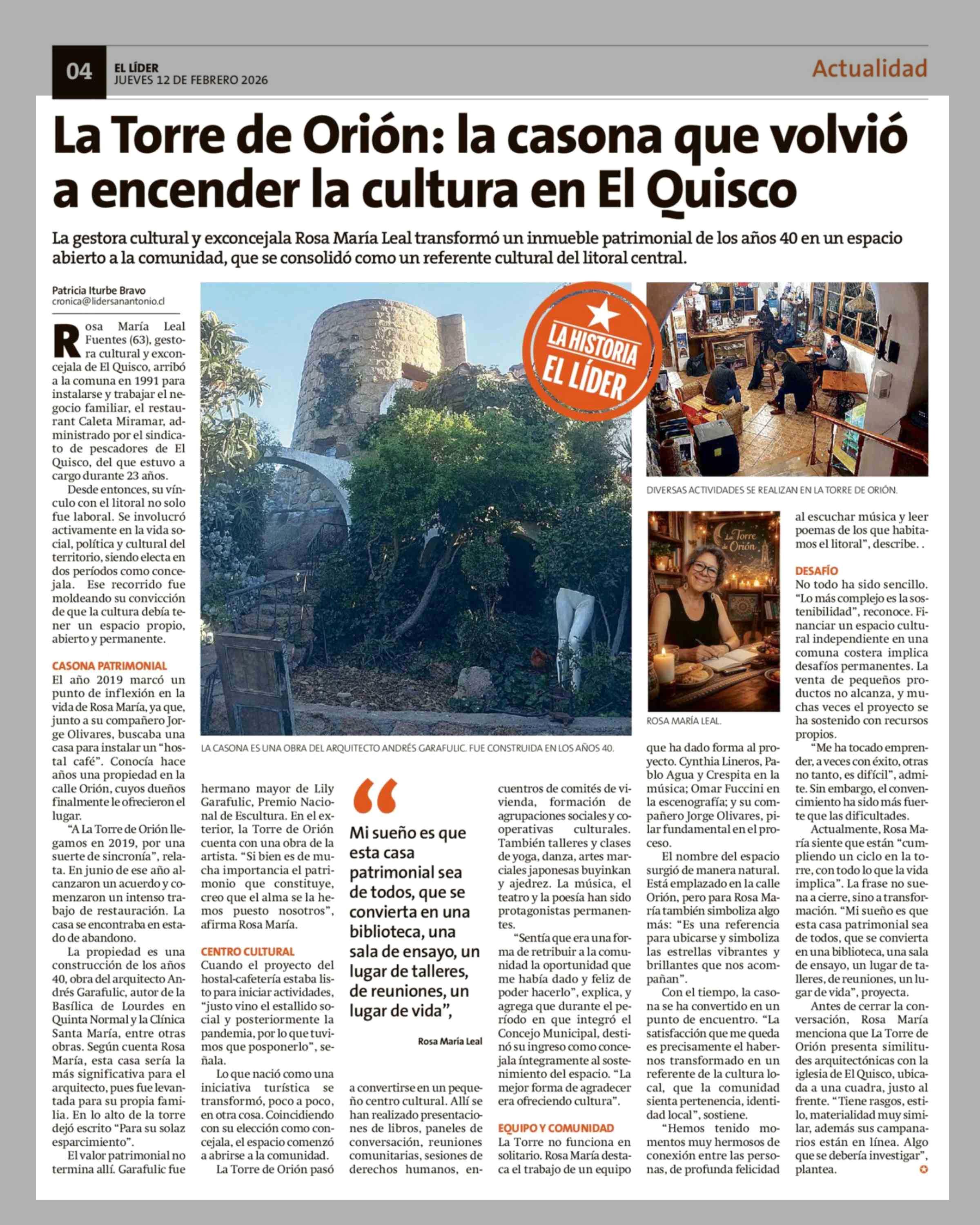 Título: La Torre de Orión: la casona que volvió a encender la cultura en El Quisco