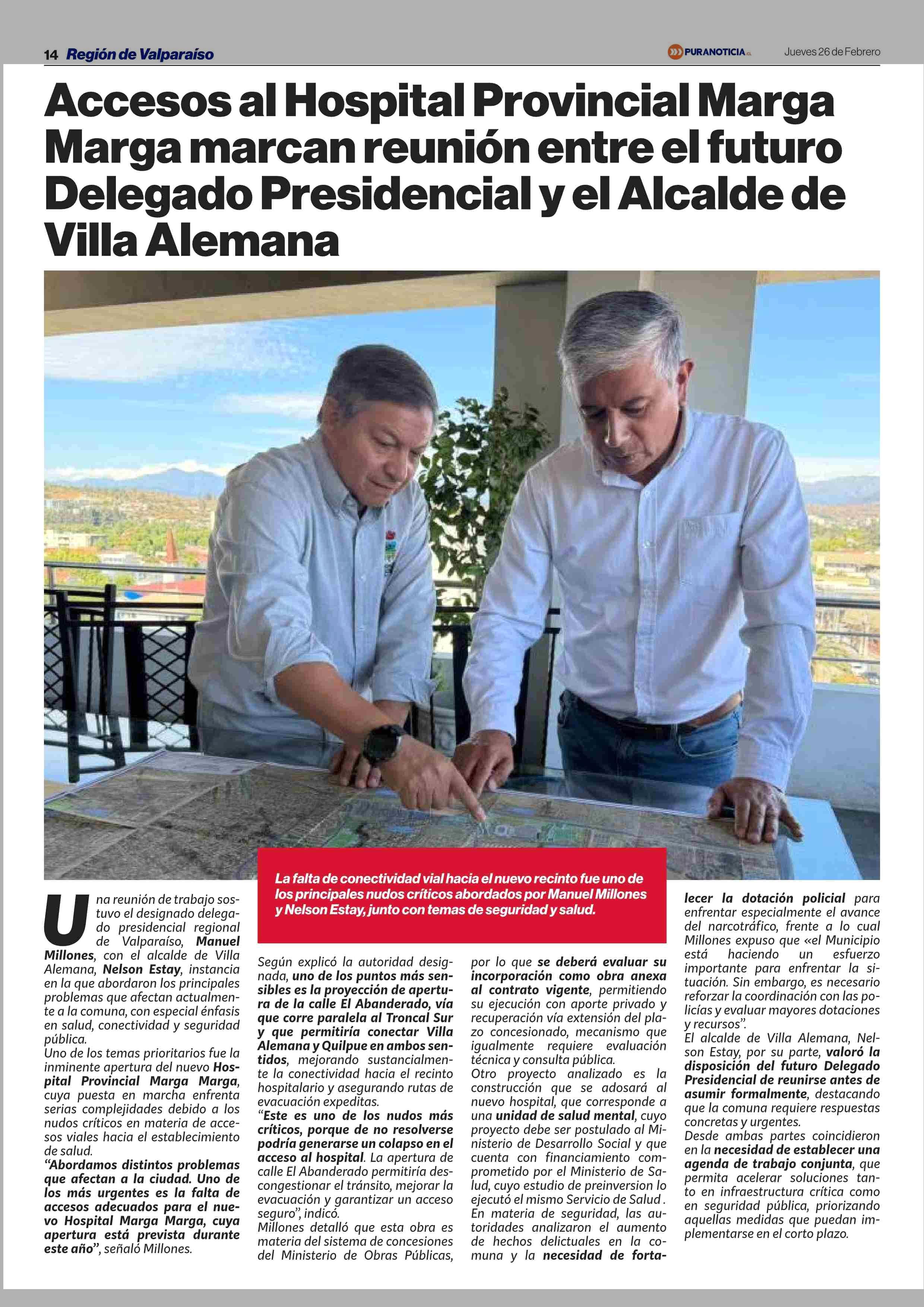 Título: Accesos al Hospital Provincial Marga Marga marcan reunión entre el futuro Delegado Presidencial y el Alcalde de Villa Alemana