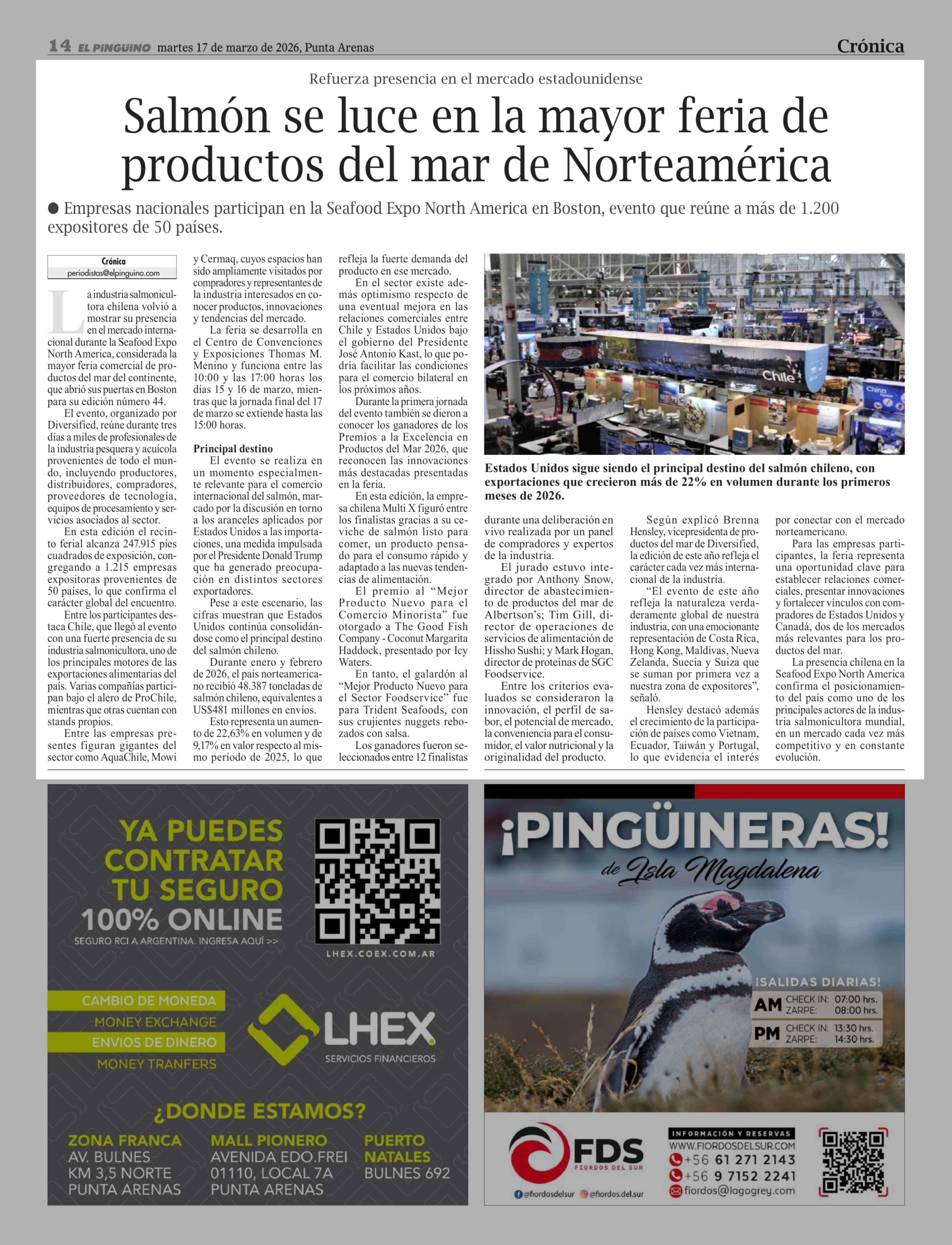 Salmón se luce en la mayor feria de productos del mar de Norteamérica 17-03-2026 El Pingüino |