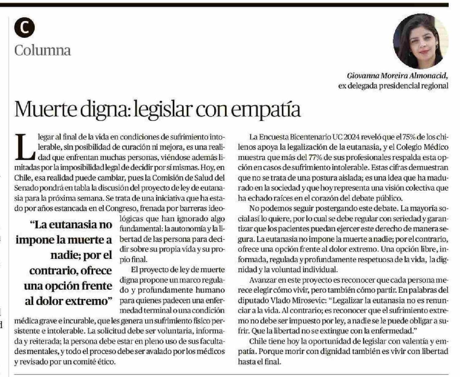Columnas de Opinión: Muerte digna: legislar con empatía 12-06-2025 El Llanquihue |