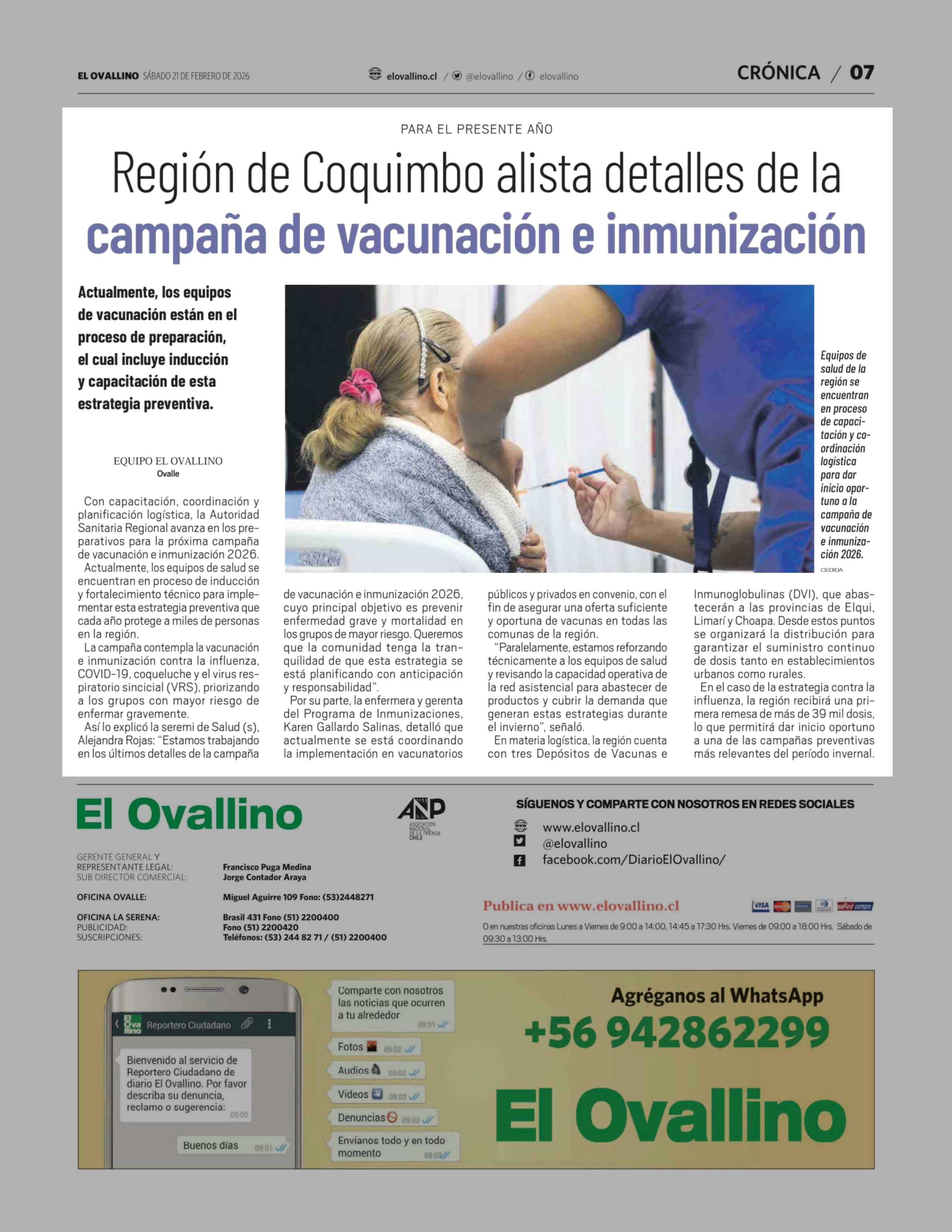 Región de Coquimbo alista detalles de la campaña de vacunación e inmunización 21-02-2026 El Ovallino |