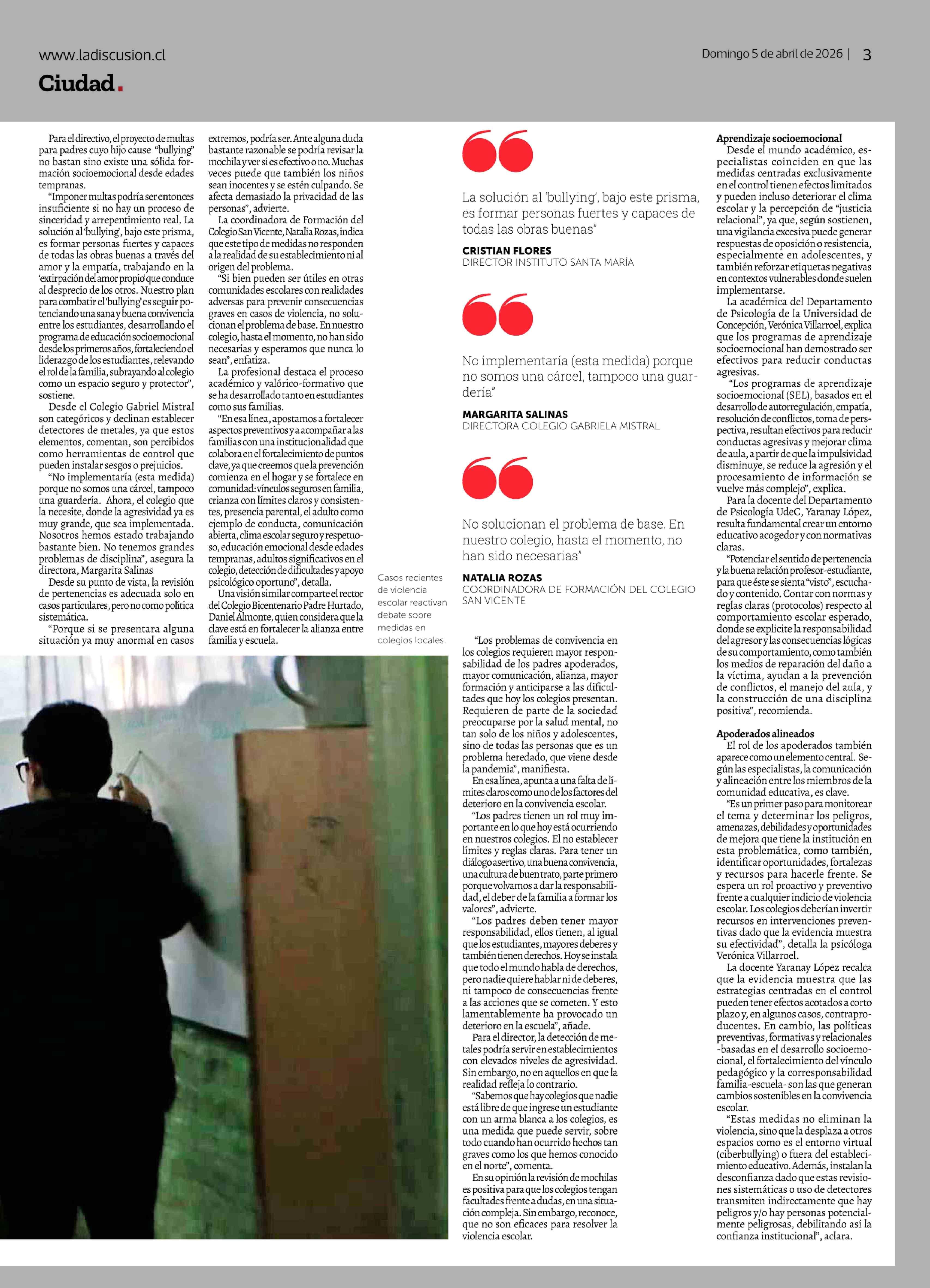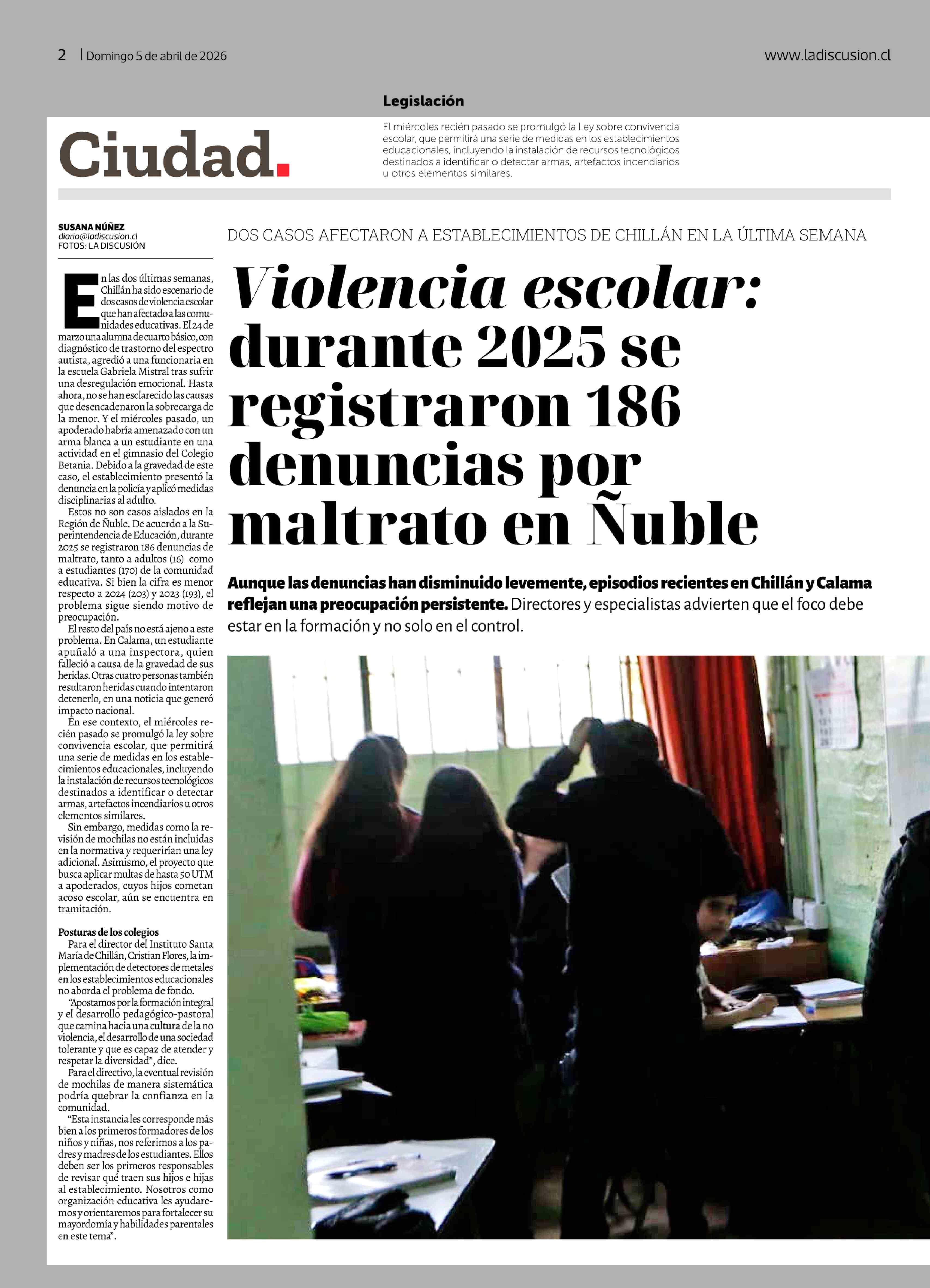 Violencia escolar: durante 2025 se registraron 186 denuncias por maltrato en Nuble 05-04-2026 La Discusión |
